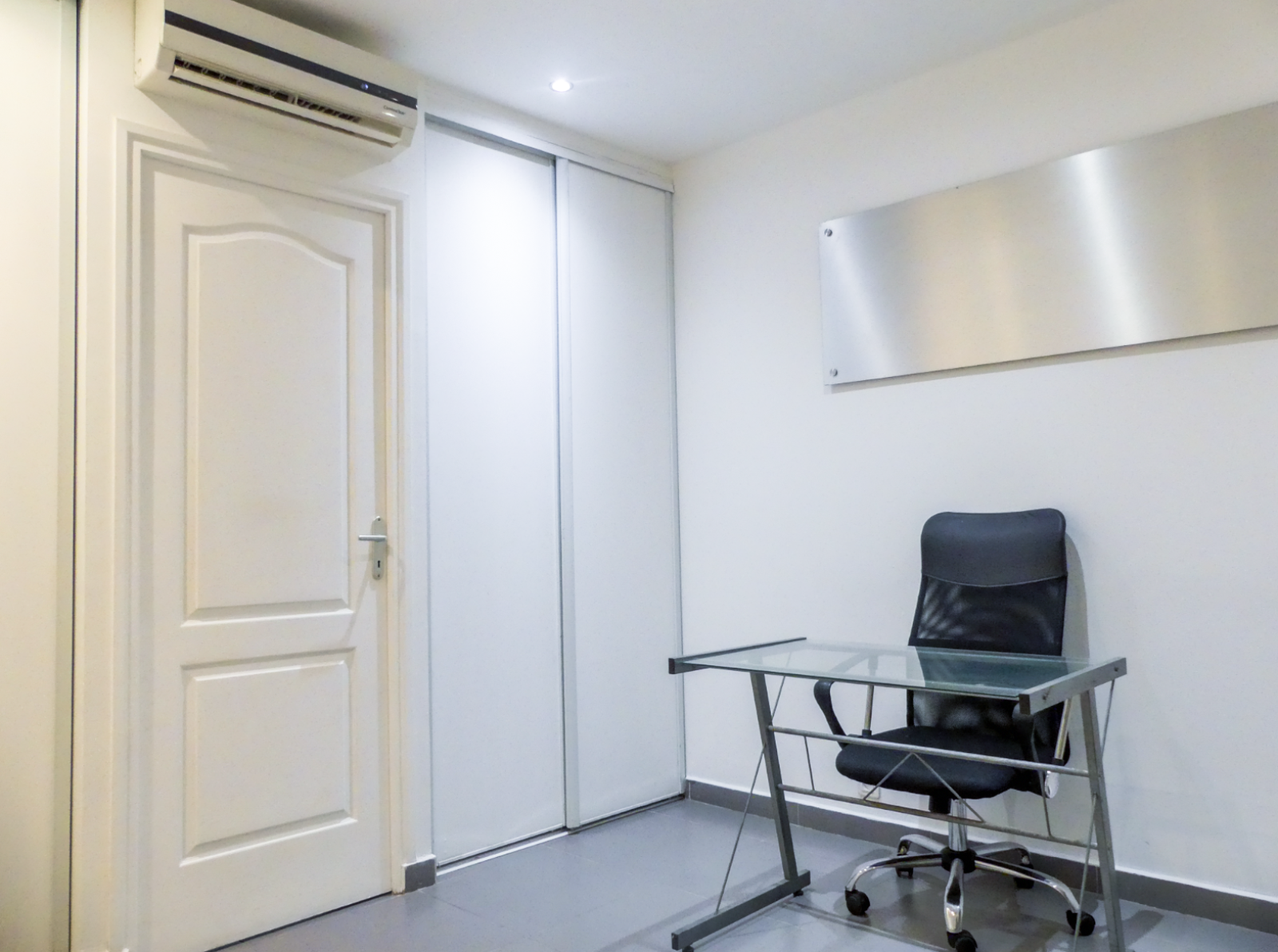 Ce local dispose d'une pièce principale avec deux espaces de rangements ainsi qu'une climatisation ainsi qu'une salle de bain avec toilettes.