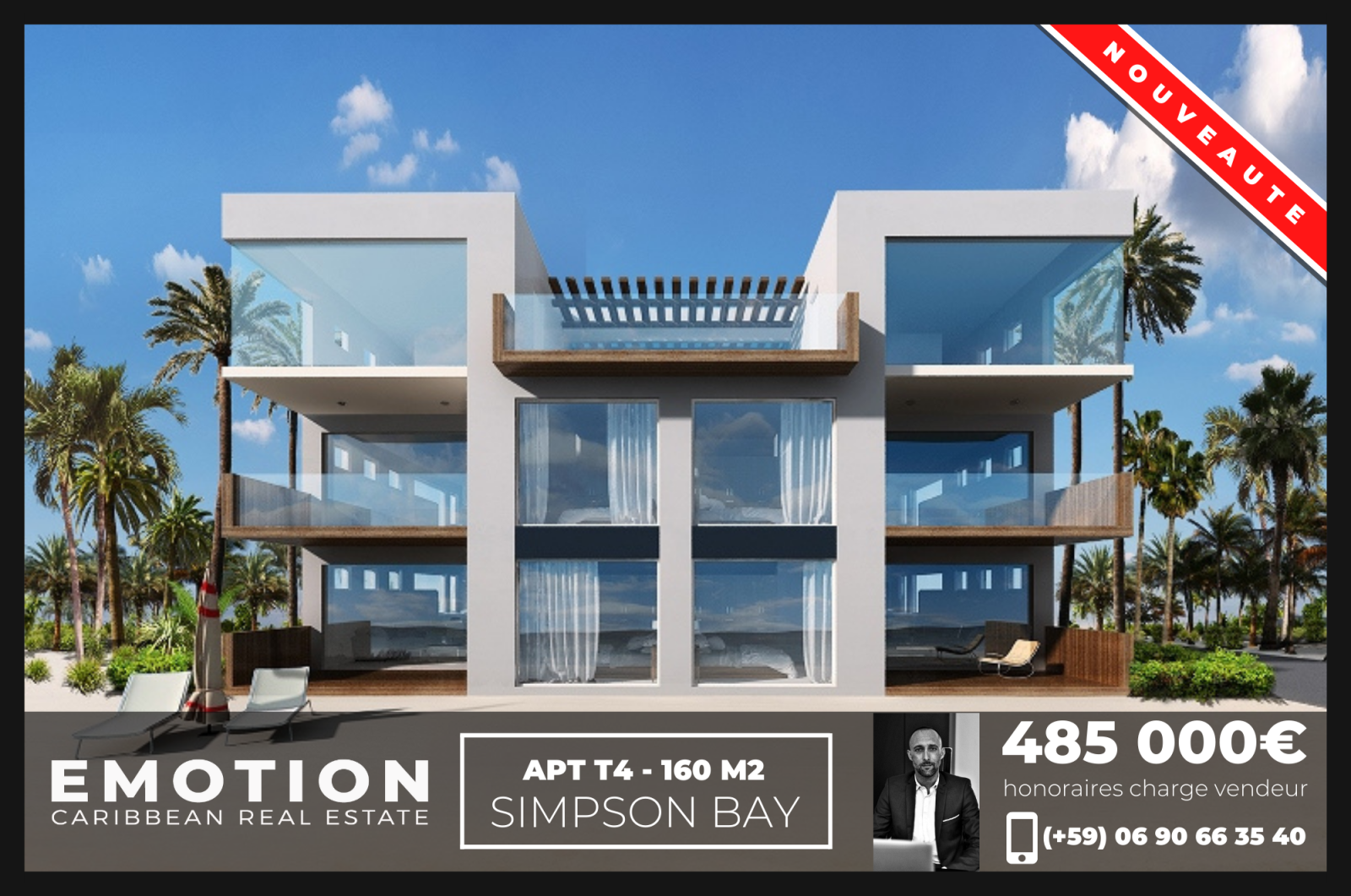 One of the last buildable beachfront properties on Simpson Bay Beach. Minutes away from restaurants, bars and activities. The beachfront tower is 4 stories with 5 spacious townhouses with private access to the beach.