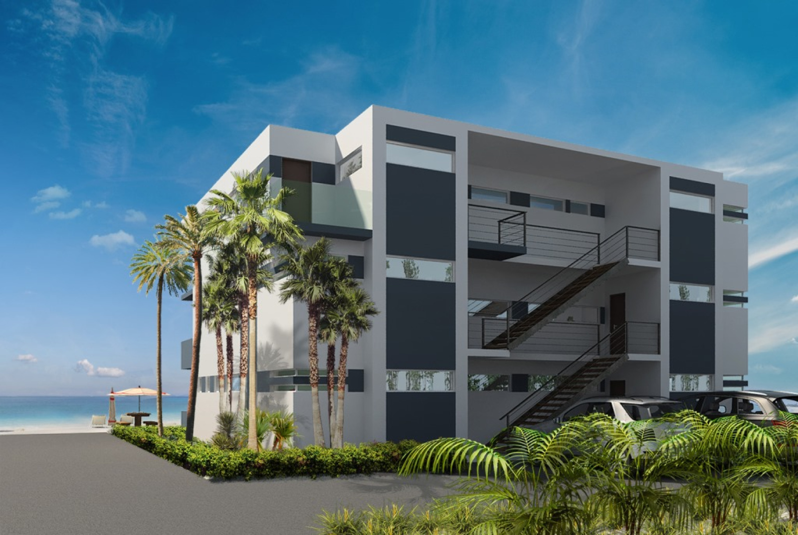 The beachfront building is 1 400 sq ft and the ground floor units come with a dip pool. 1 unit left.