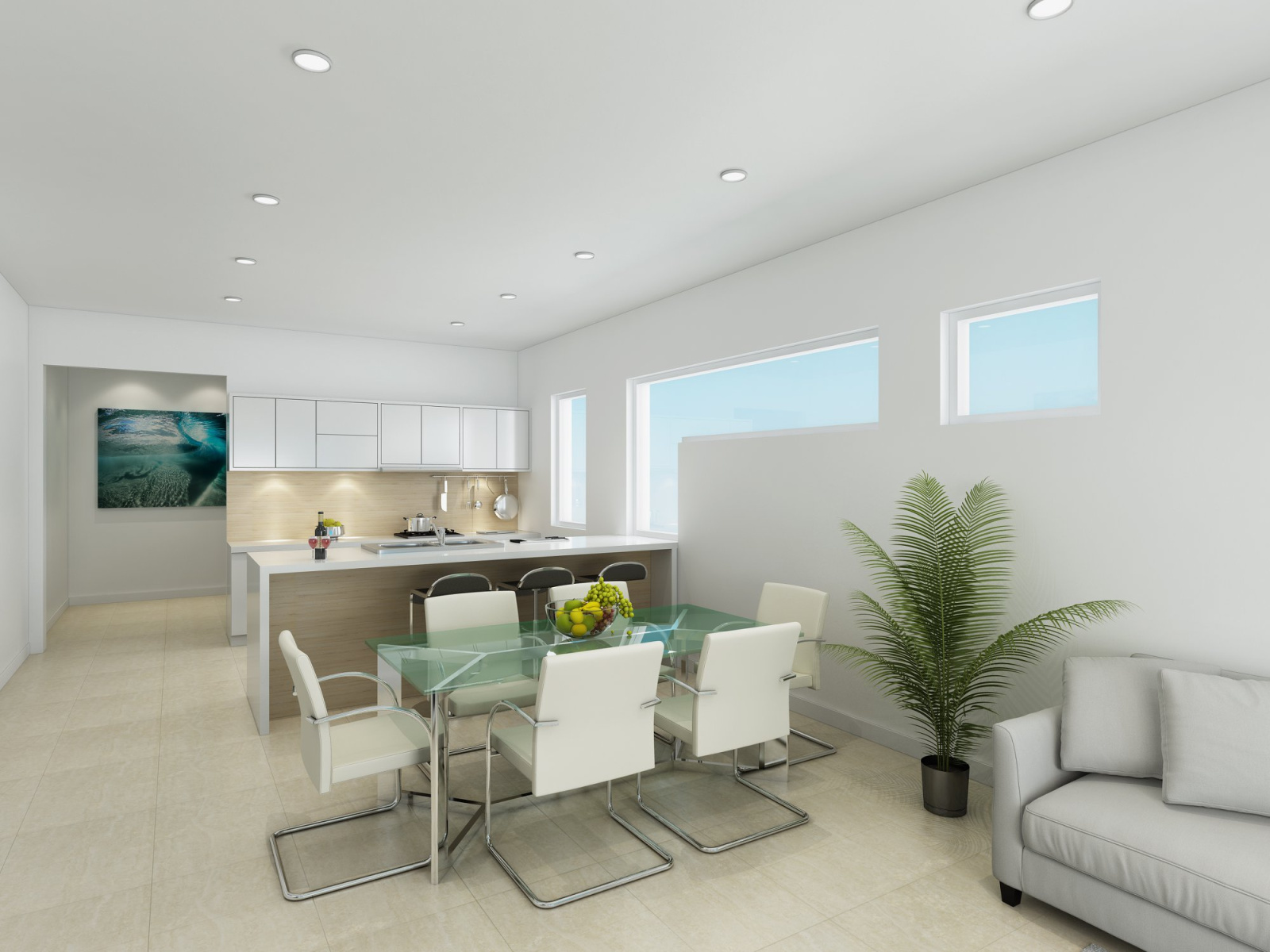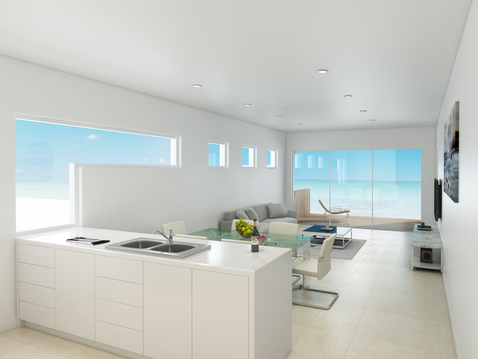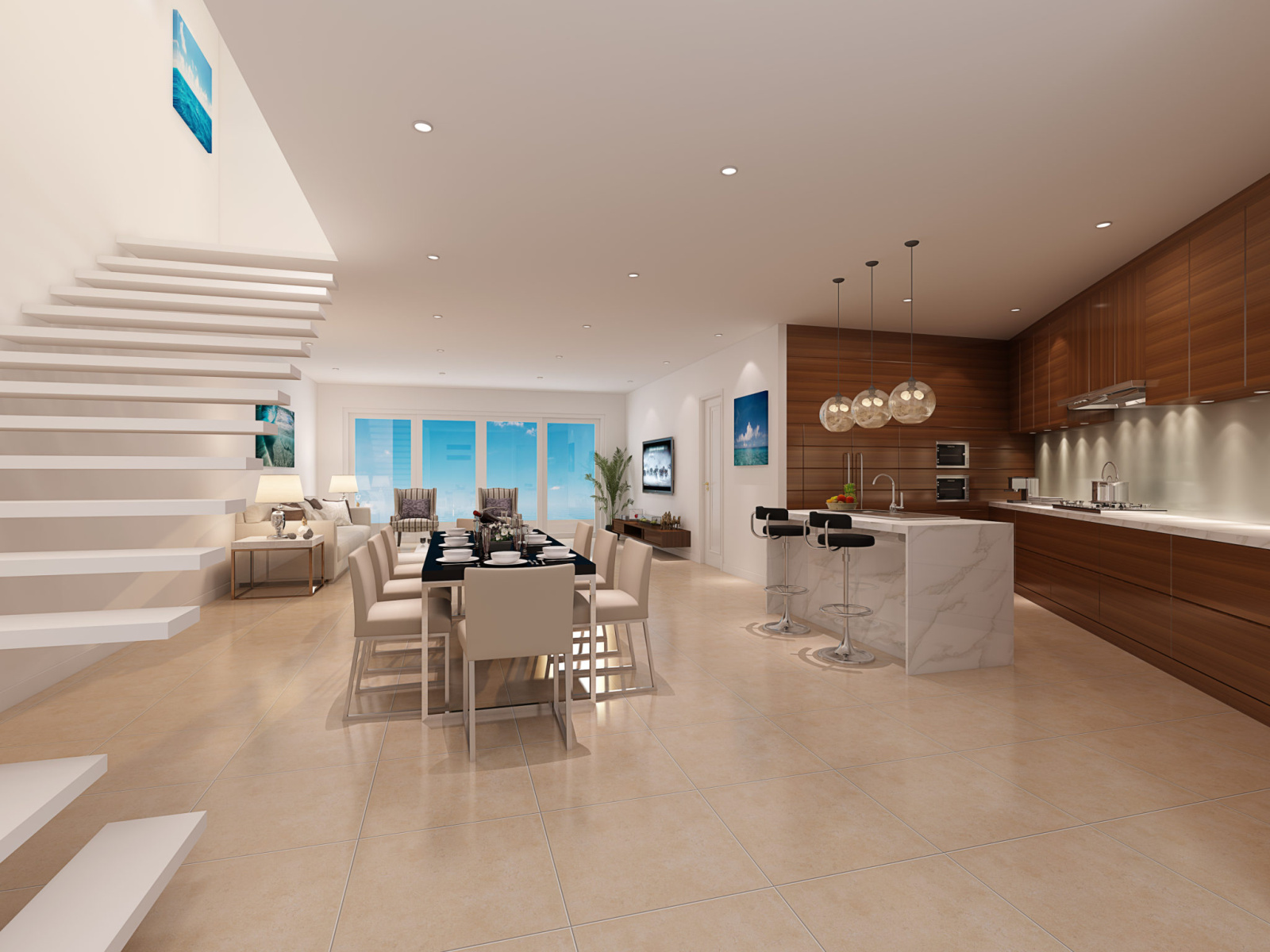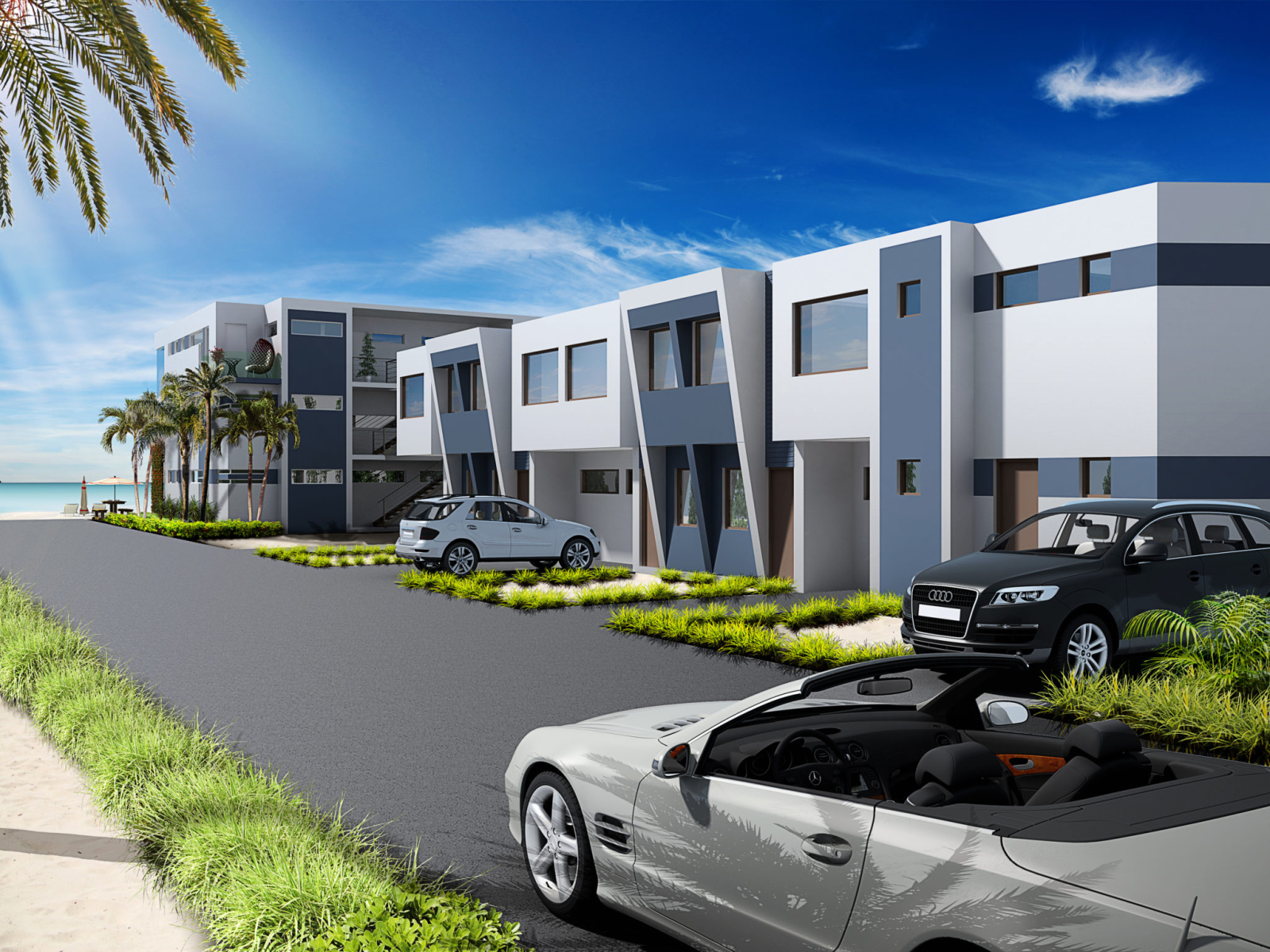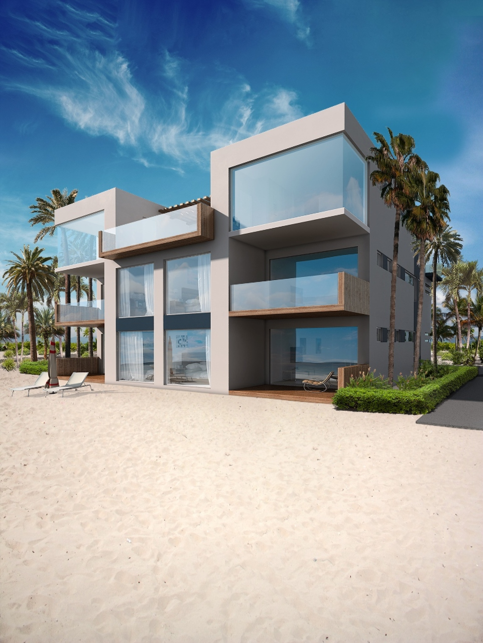 A piece of luxury on the beach with modern design, Italian kitchen, waterfall island, floating staircases, and spacious.