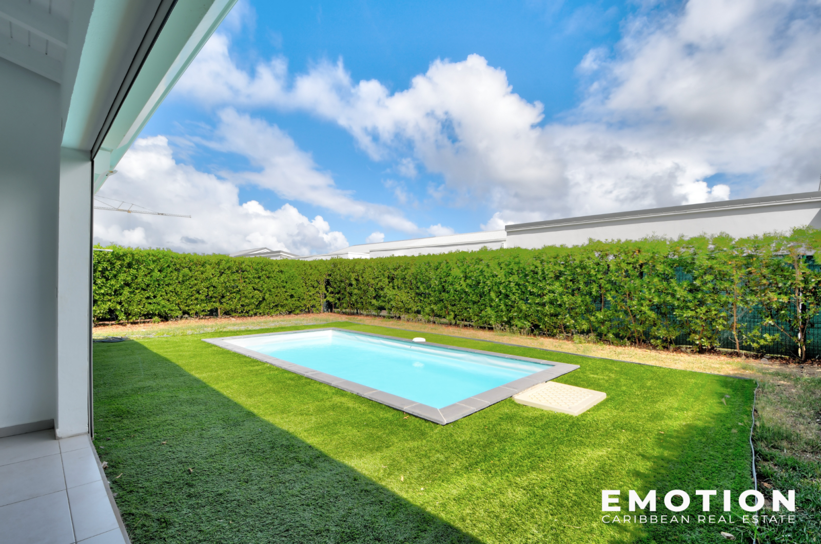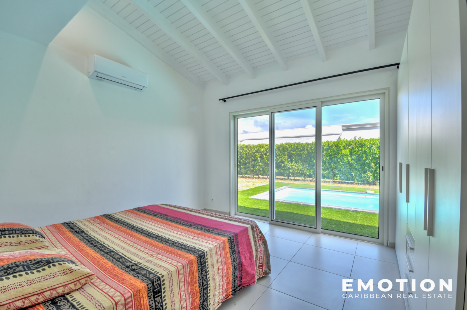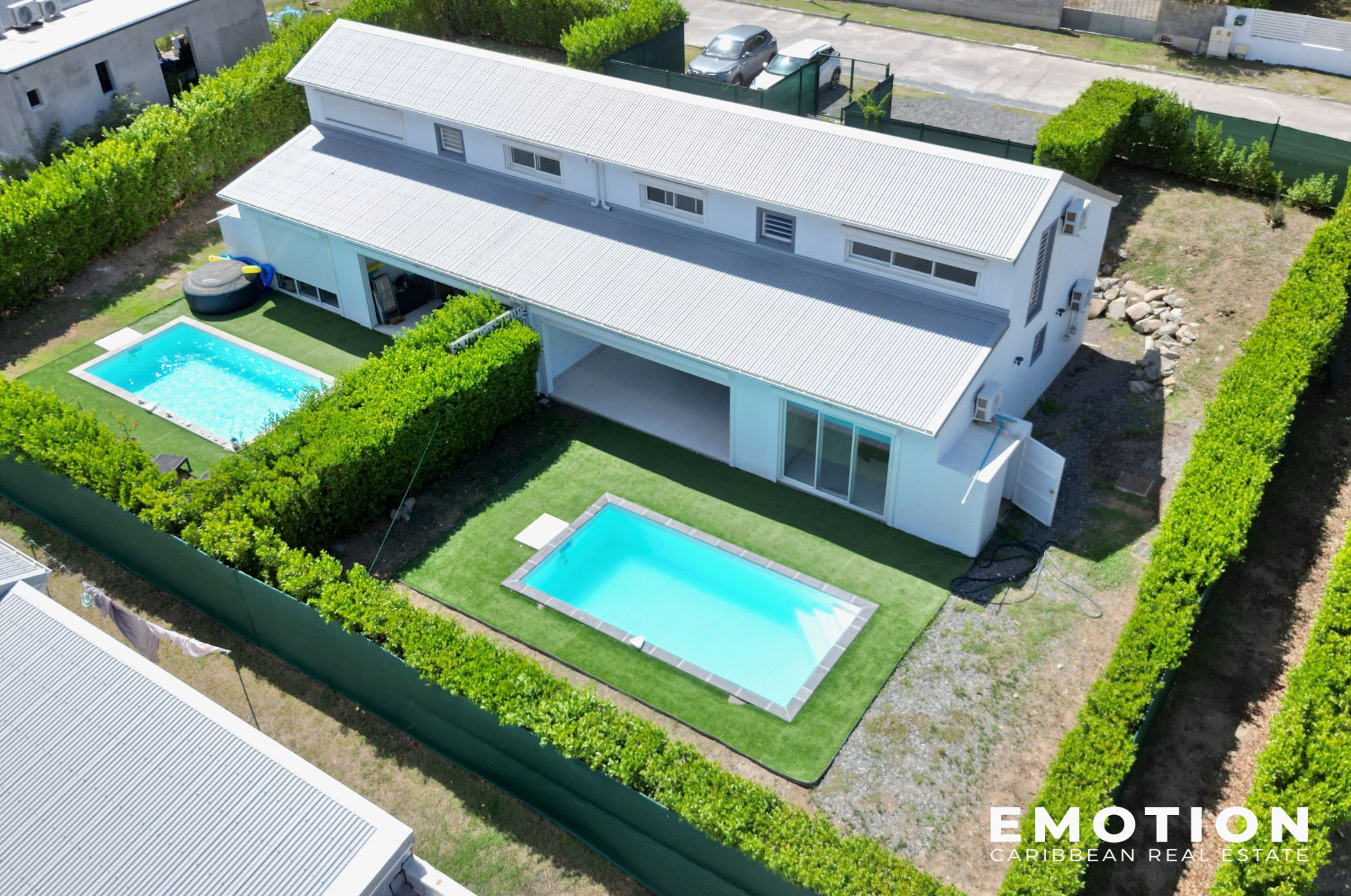Le cabinet EMOTION REAL ESTATE, vous propose à la vente sur le secteur de Cul-de-Sac , dans un quartier en plein essor de la partie française, à 10 minutes de la Baie orientale, ses plages et ses restaurants, à 5 minutes en voiture de Grand Case, ses plages et son aéroport, à 2 minutes de la plage d'anse Marcel , à 2 minutes de la zone commercial d'Hope Estate, une maison mitoyenne par un coté de 103 m2.