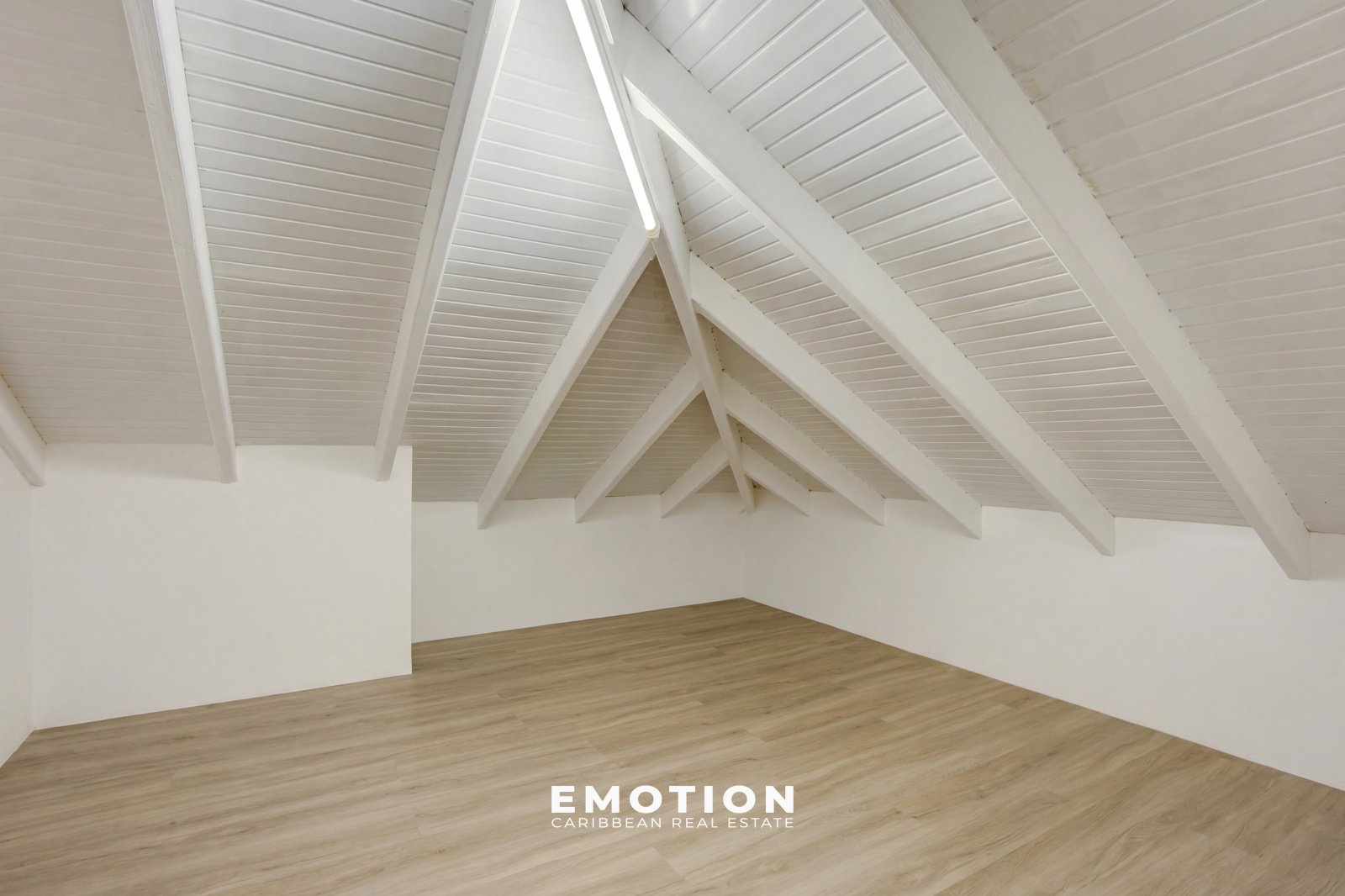 Le bien se compose à l’étage : une chambre master de 17 m² avec rangements incorporés et salle d’eau ouverte avec douche à l’italienne, un bureau pouvant être aménagé en dressing ou chambre d’appoint, des espaces sous combles aménagés en rangements.