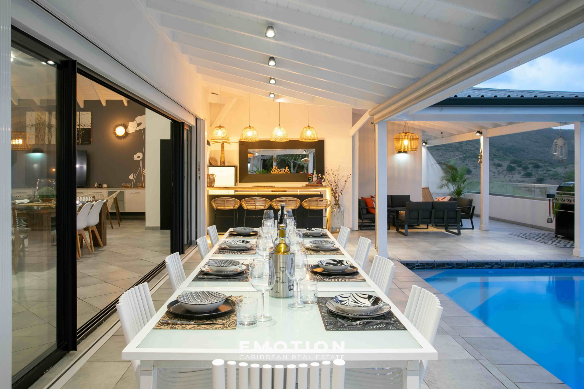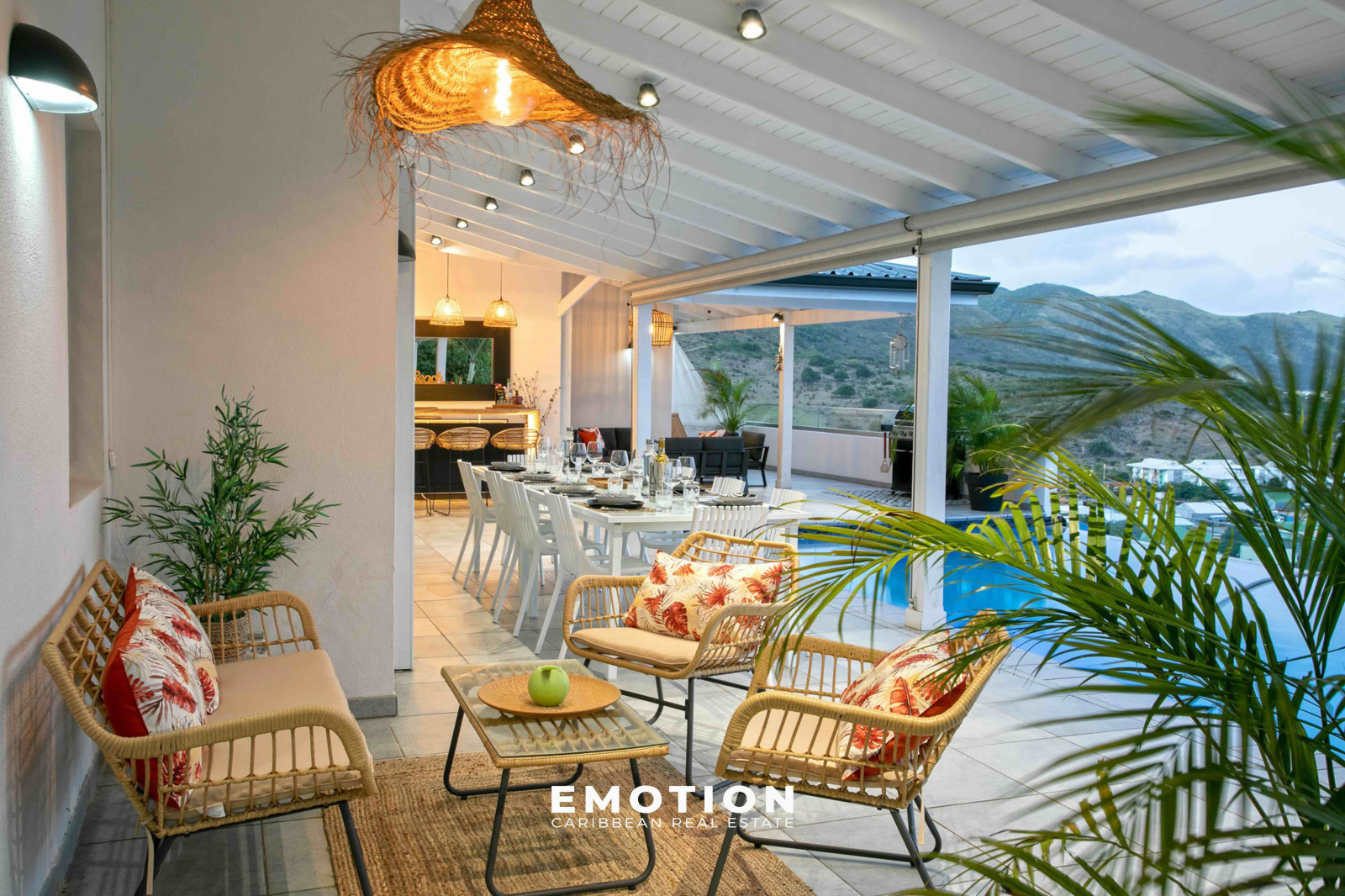 Le cabinet Emotion Real Estate vous propose cette villa située sur les hauteurs prisées de Mont-Vernon, au sein d’un lotissement sécurisé et calme, à quelques minutes seulement des plages, restaurants et commerces.