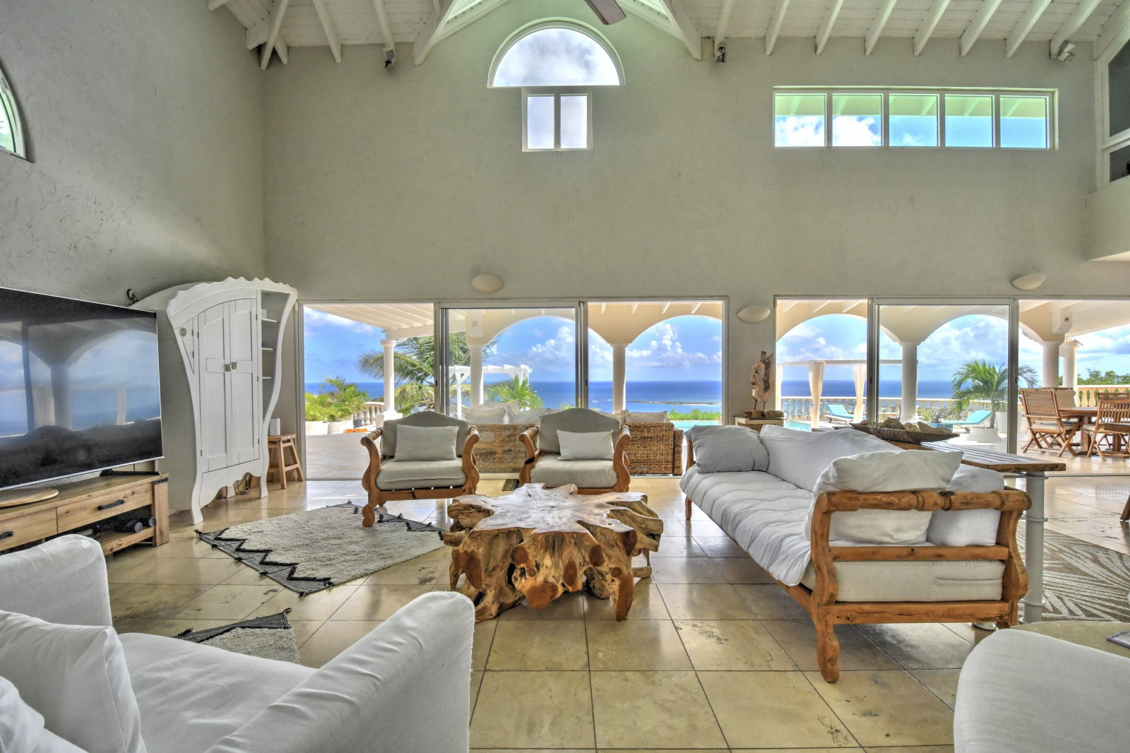 Le bien se compose : d'une allée arborée pour rejoindre la propriété, un salon lumineux de 80m², avec cuisine ouverte équipée / aménagée, donnant sur une terrasse couverte spacieuse de 100 m², proposant différents espaces et un coin barbecue avec vue sur la piscine et la baie Orientale. Cette villa de prestige avec une belle hauteur sous plafond, compte 4 chambres climatisées, chacune bénéficiant de sa propre salle de bains privative et son dressing.