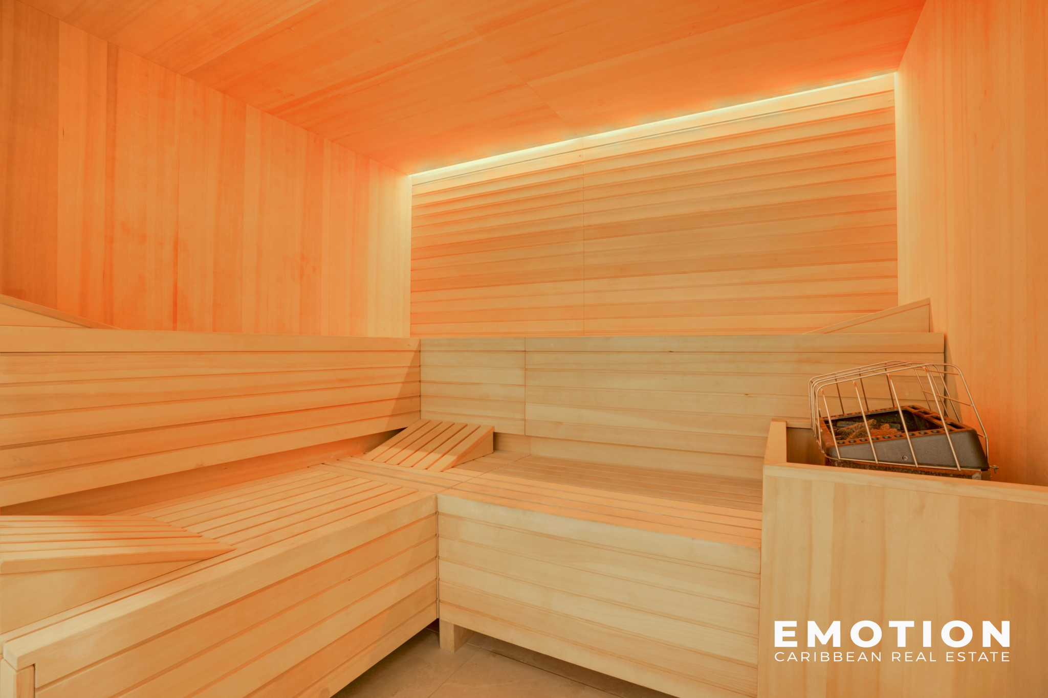 Le bien se compose en annexes : deux places de parking en sous-sol, un local de rangement, accès direct à une plage de sable blanc, piscine extérieure en bord de mer, piscine intérieure chauffée, spa Dior, salle de sport, court de tennis, restaurant gastronomique, conciergerie privée, sécurité 24h/24, accès sécurisé par portail automatisé, et ascenseur desservant directement les étages.