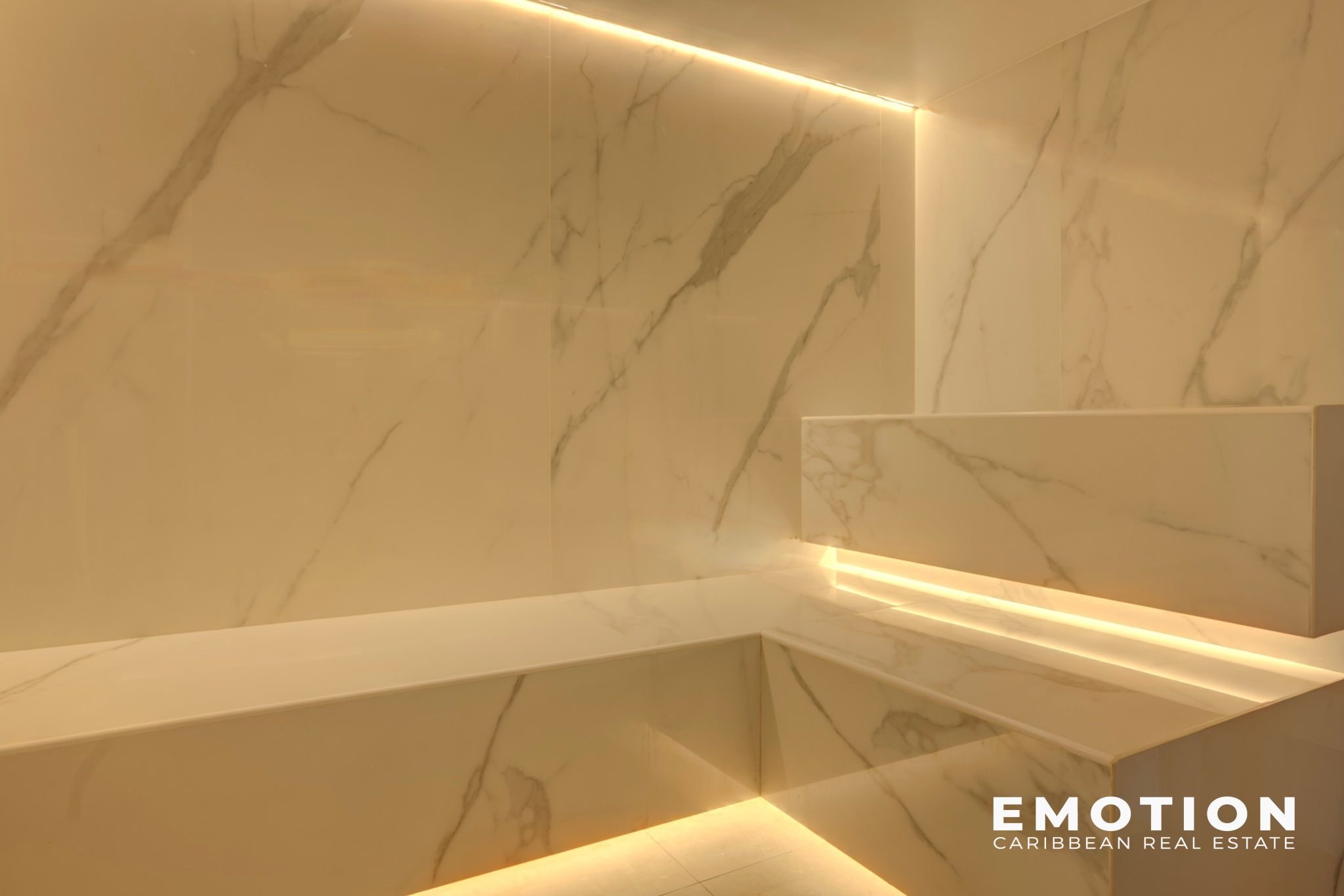 Le bien se compose au niveau supérieur : d’une somptueuse suite parentale avec dressing, salle de bain attenante et terrasse panoramique de 15,5 m² surplombant la mer des Caraïbes, de deux suites supplémentaires avec dressings et salles de bain privatives, ainsi qu’une buanderie.
