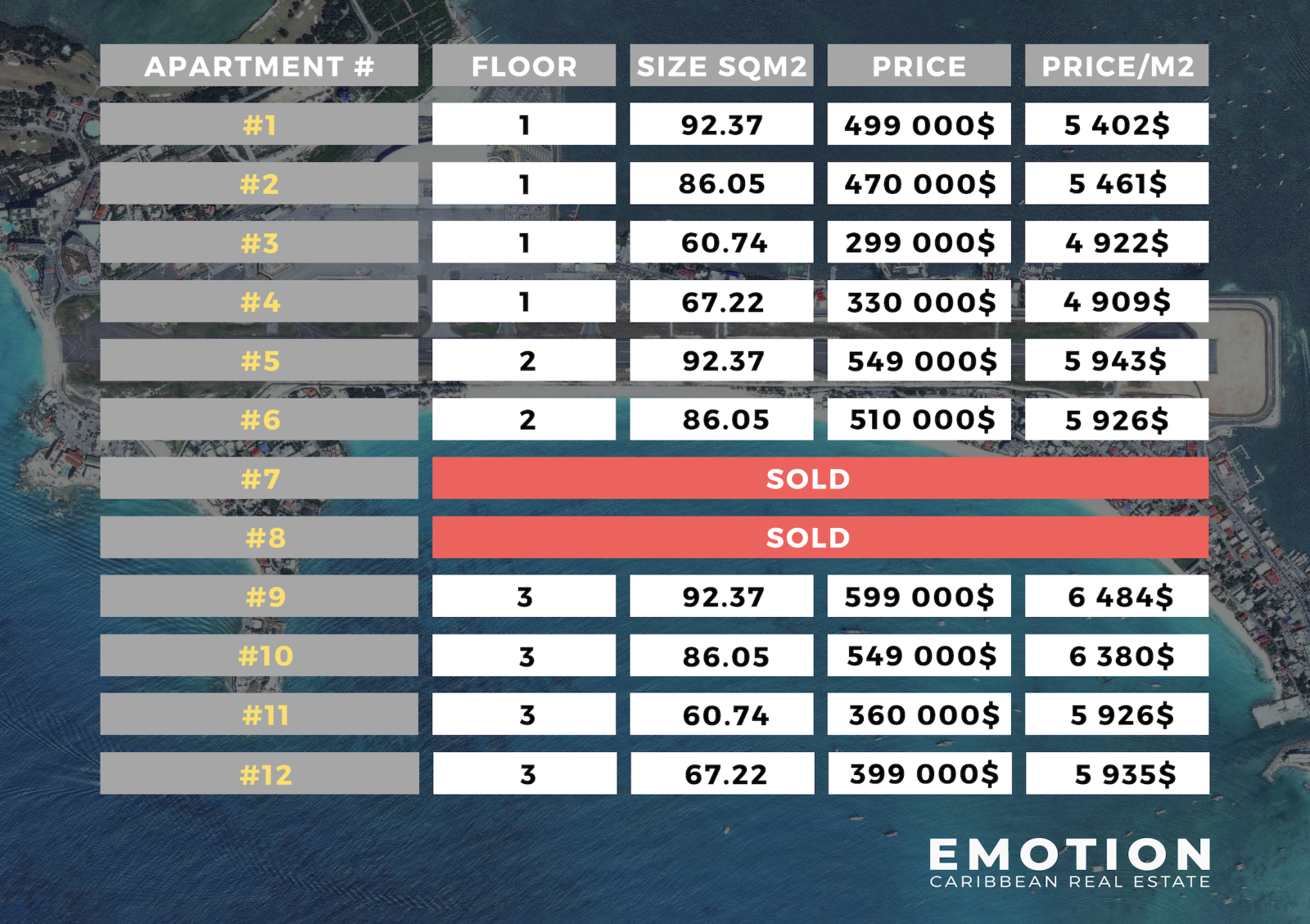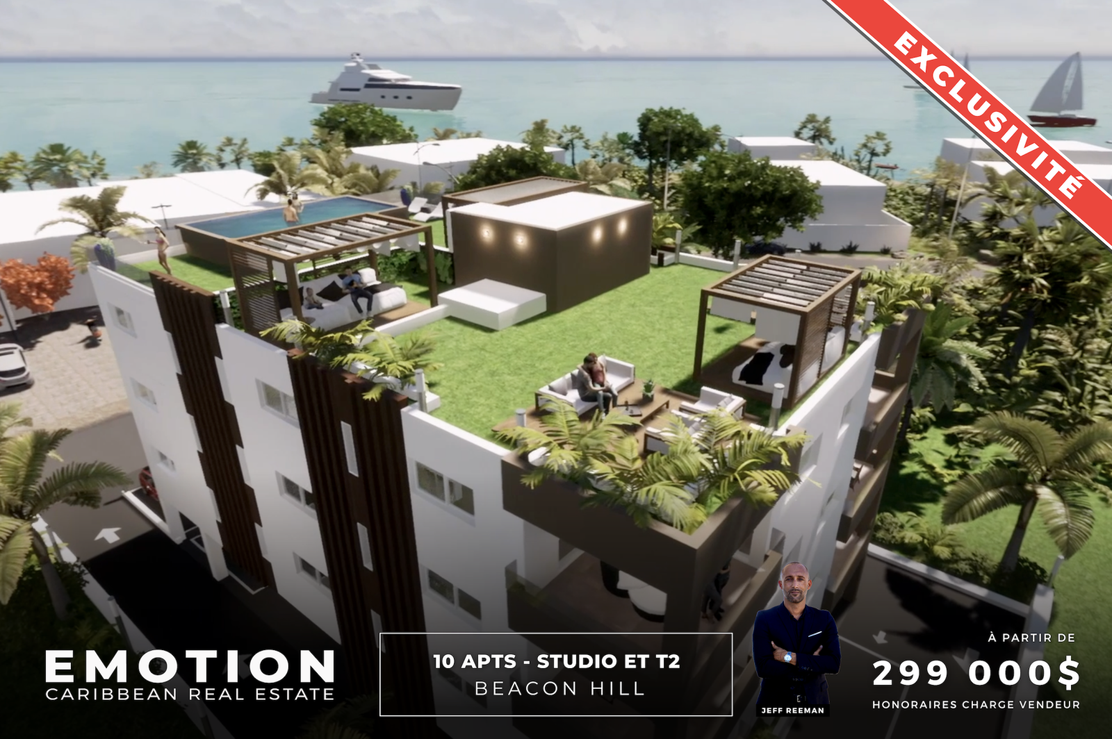Le cabinet EMOTION vous présente à la vente, un nouveau projet qui sera livré en décembre 2024, la résidence fermée et sécurisée, VILLA SASHA dans le secteur prisé de Beacon Hill, à 2 minutes à pieds du centre ville de Maho avec ses restaurants, bars, établissements de nuit et casino, à seulement 5 minutes en voiture de l'aéroport de Juliana, ainsi que du golf de la plage de Mullet Bay.