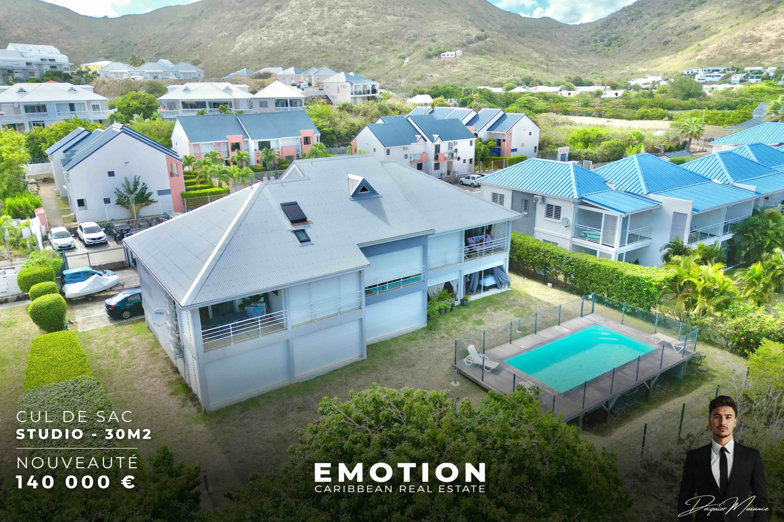 Maxance Docquier Emotion Real Estate immatriculé numéro 842 801 938 RSAC Basse Terre Guadeloupe. Pour le compte du cabinet Émotion - RCS TMC 811 151 034 Basse-Terre sous la carte professionnelle numéro CPI 97812 0180 0003 7333 délivré par la CCI de Saint Martin.