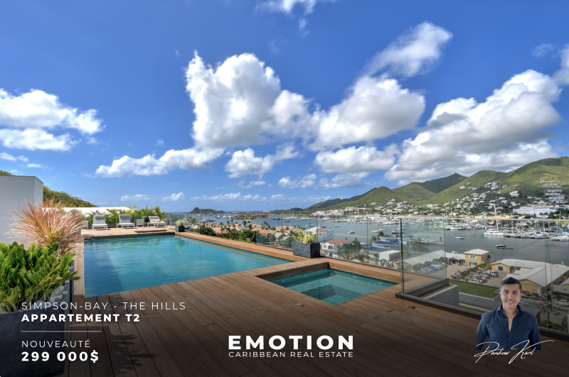 Le cabinet Emotion Real Estate, vous propose à la vente, au premier étage, dans une résidence neuve de grand standing actuellement en fin de construction, un bien en angle avec vue mer sur le secteur de Marigot, à seulement quelques minutes à pied de la Marina Royale, de la Marina Fort Louis, du marché local, et de la rue commerçante de Marigot. La proximité avec le secteur hollandais est également un atout fort.