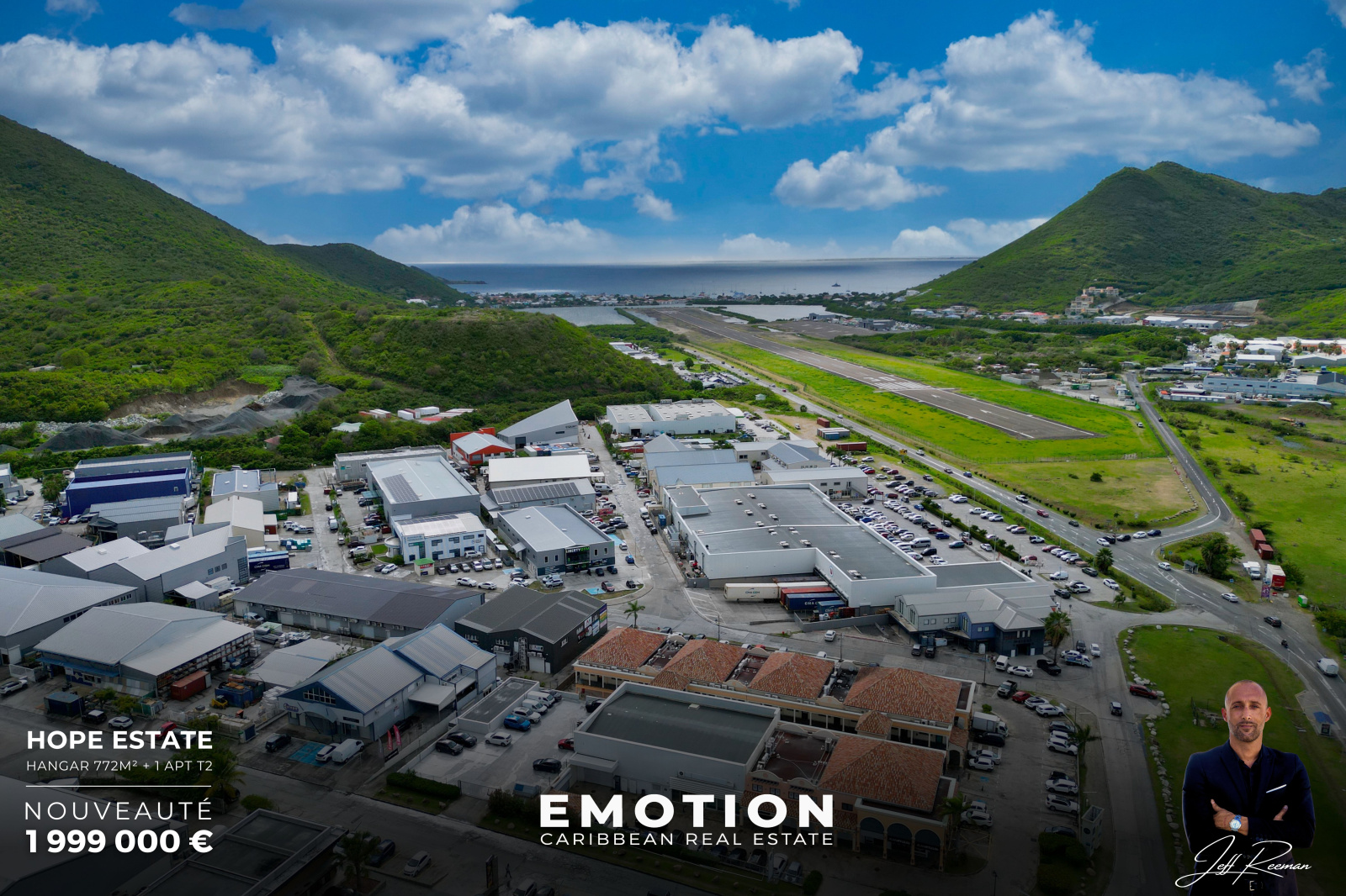 La zone industrielle de Hope Estate est aujourd’hui l’un des secteurs les plus dynamiques et stratégiques de Saint-Martin. Très peu de biens similaires y sont encore disponibles à la vente, faisant de cette opportunité un produit rare. L’implantation à proximité immédiate des axes principaux et de l’aéroport renforce l’attractivité du site pour une activité professionnelle comme pour un investissement à long terme.
