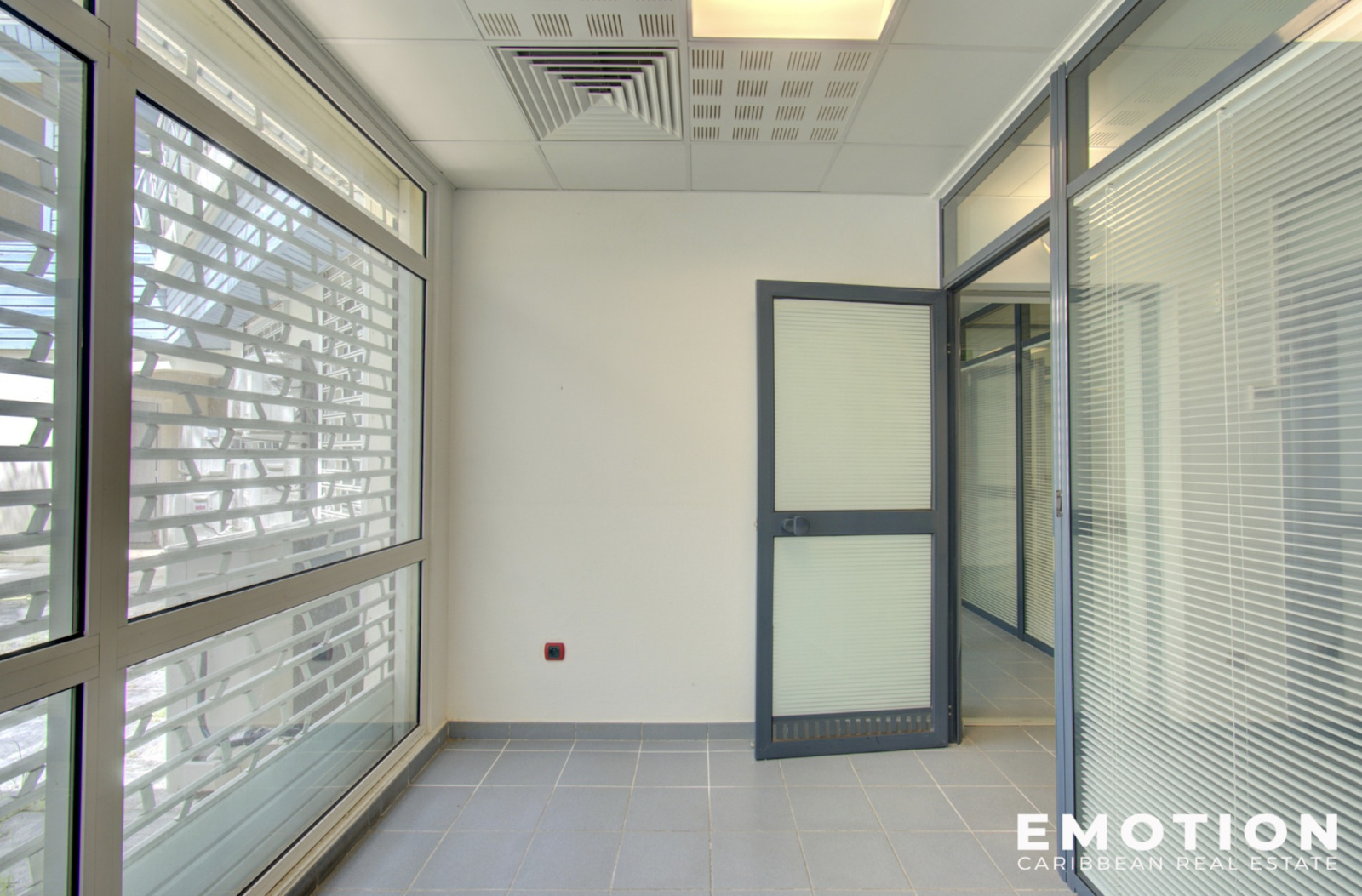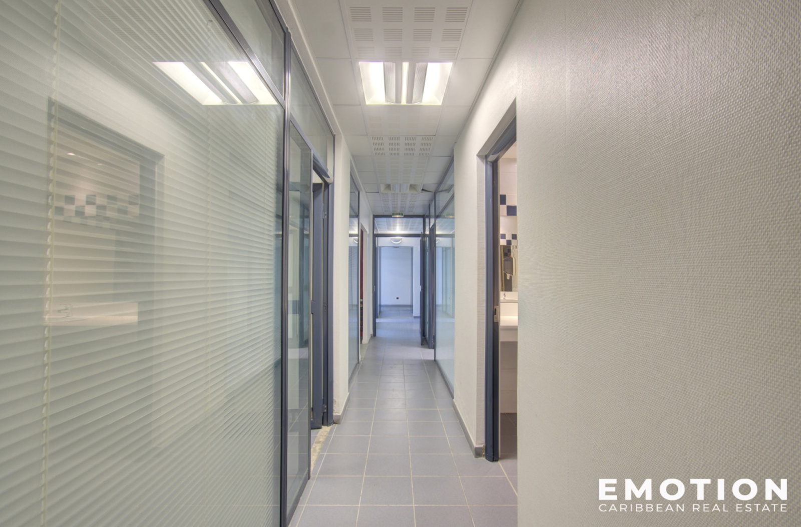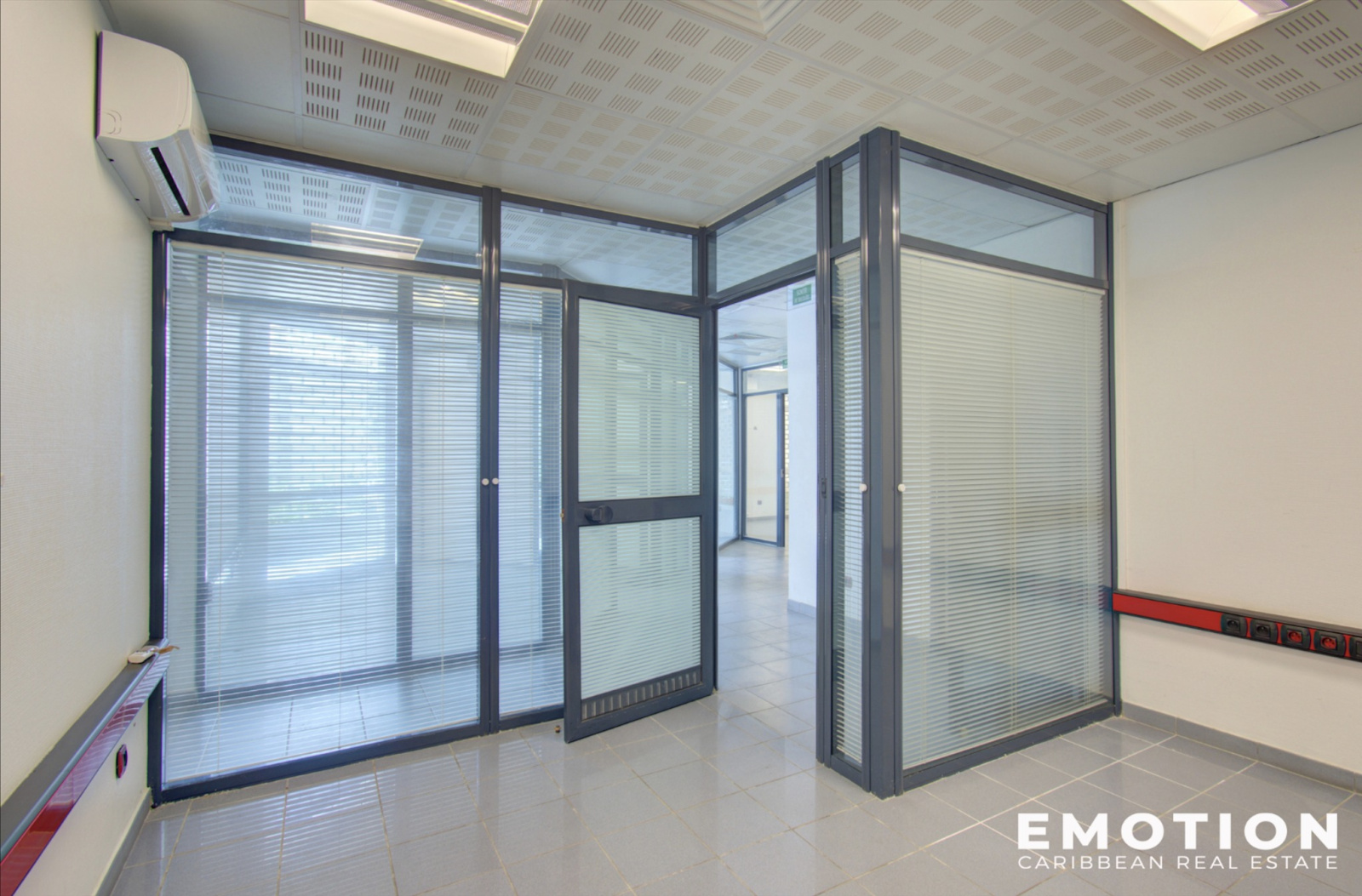 L'immeuble se compose au RDC : du lot 1 – un local commercial de 36.27 m2 carrez donnant directement sur la rue, le lot 2 – un local commercial de 76.44 m2 carrez donnant sur un patio/cour intérieure, ainsi que le lot 3 – un local commercial traversant de 282.87 m2 carrez donnant sur la rue et le patio. Le lot 3 est composé d'une réception, 7 bureaux et 2 salles de réunion, 2 salles d'eau ainsi qu'un espace kitchenette.