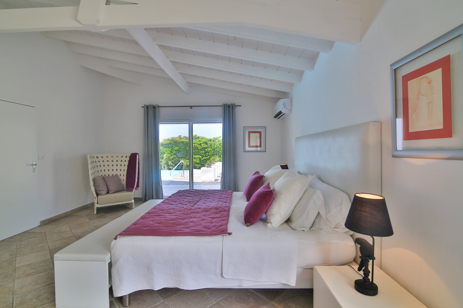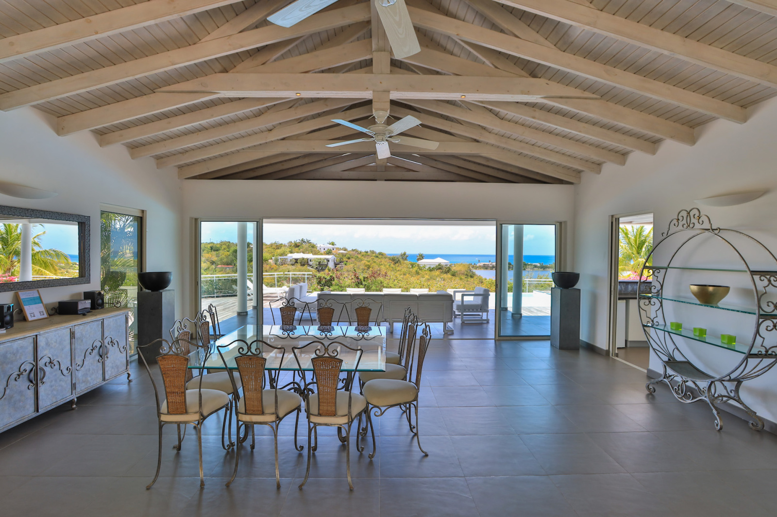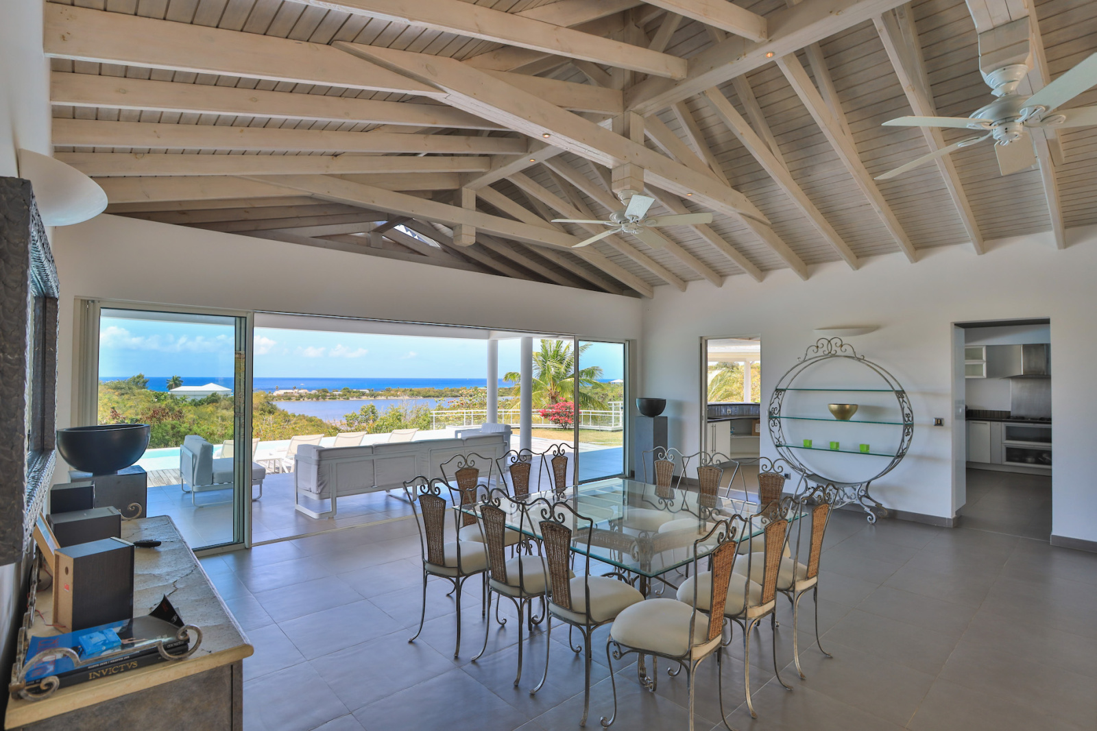 La villa CALLISTO dans un style traditionnel créole, se compose d’une grande entrée sur dégagement, donnant directement accès à une pièce de vie avec plafond cathédrale, un coin salon et une cuisine ouverte aménagée et équipée, orienté sur les espaces extérieurs avec notamment une terrasse couverte, une piscine à débordement entourée sa terrasse exposée OUEST offrant une jolie vue dégagée sur la mer. Concernant la partie nuit, vous découvrirez de plain-pied avec les terrasses et la piscine, 3 chambres de type master chacune sont équipées d’une salle d’eau avec douches italiennes, doubles vasques et rangements.