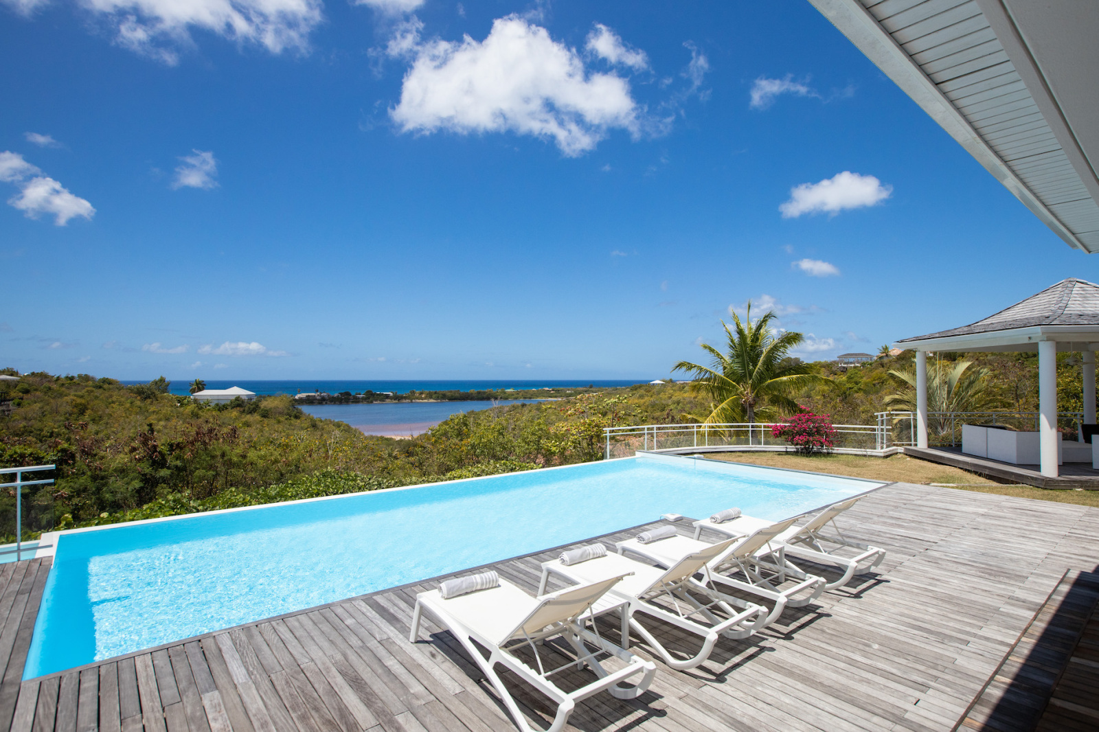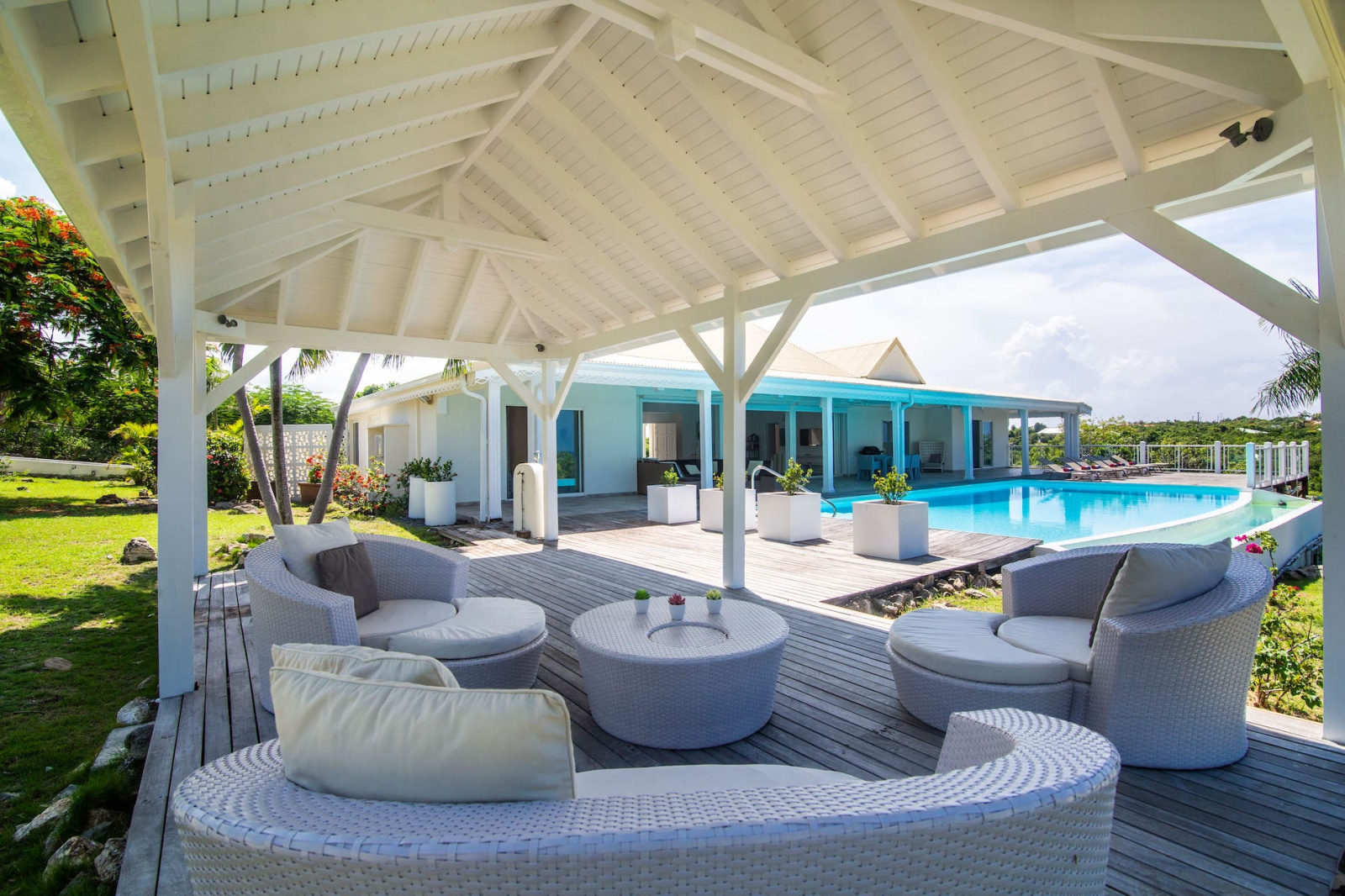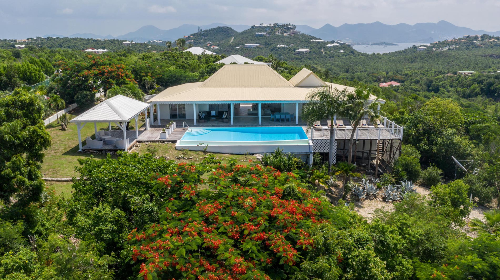 Dans le secteur privilégié des Terres-Basses à 5m en voiture du golf de Mullet Bay, des restaurants, bars, commerces et activités de Maho. À 10m en voiture de Marigot capitale de la partie Française et de l'aéroport Princess Juliana, en partie Hollandaise.