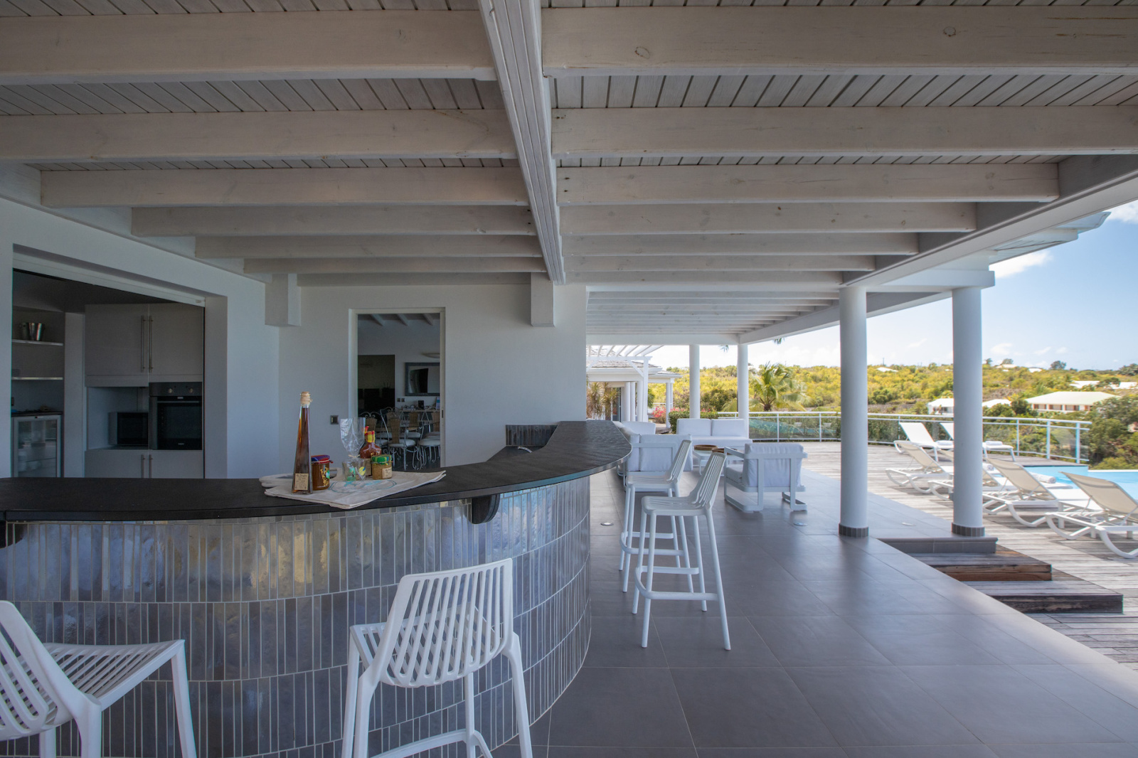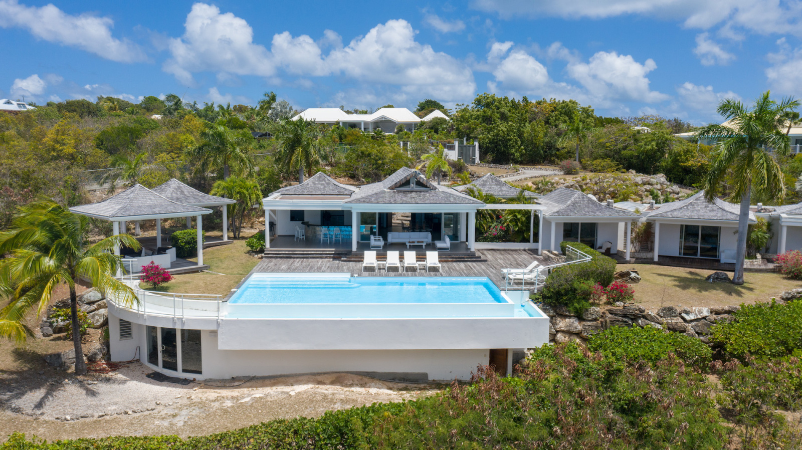 La villa NO LIMIT dans un équilibre parfait du stylemoderne tout en conservant un style des constructions typiques de l’Asie notamment avec sa toiture en bois traditionnel de bardeau. La villa se compose d’une grande entrée sur dégagements, donnant directement accès à une pièce de vie avec plafond cathédrale, un coin salon avec système TV et une cuisine aménagée et équipée, ouverte sur un bar extérieur. Sur la partie extérieur de la villa vous bénéficierez de différents espaces de détentes par différents salons, une salle à manger extérieur couverte, une piscine à débordement entourée de sa terrasse orientée OUEST offrant une magnifique vue mer et de magnifique couché de soleil.
