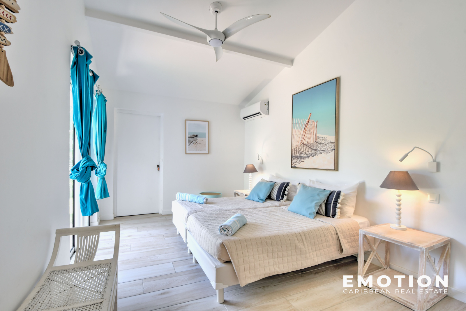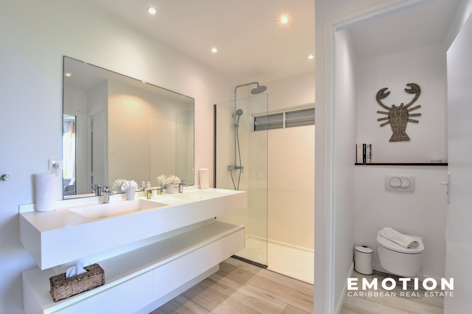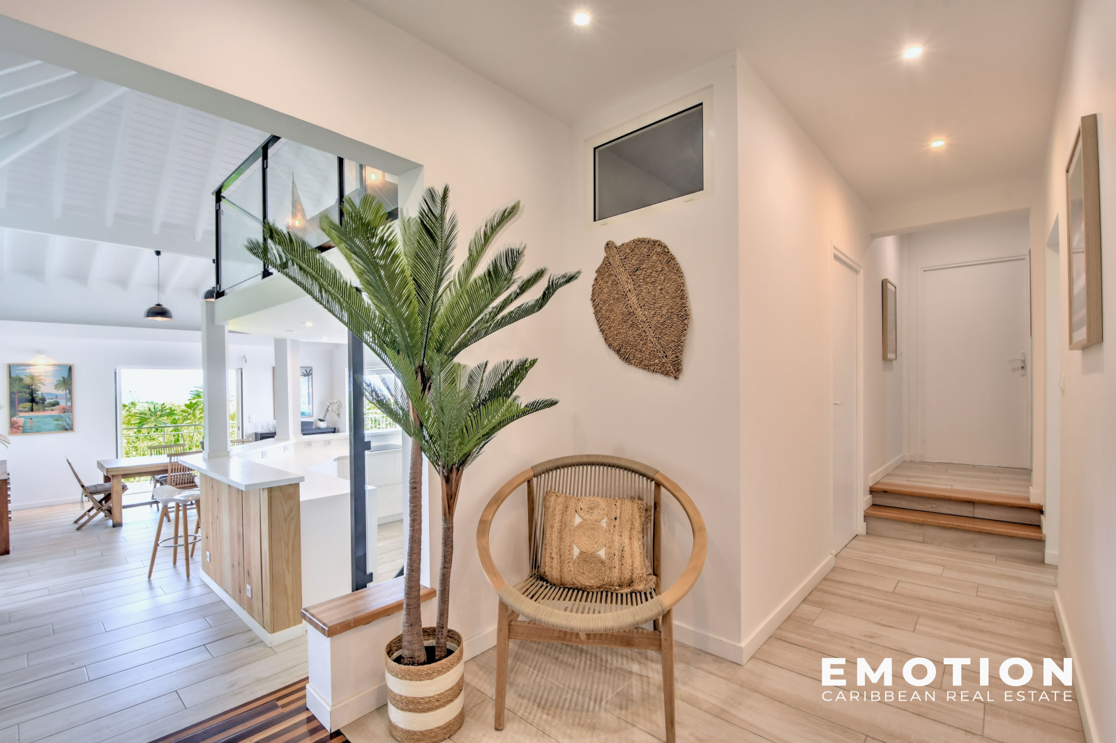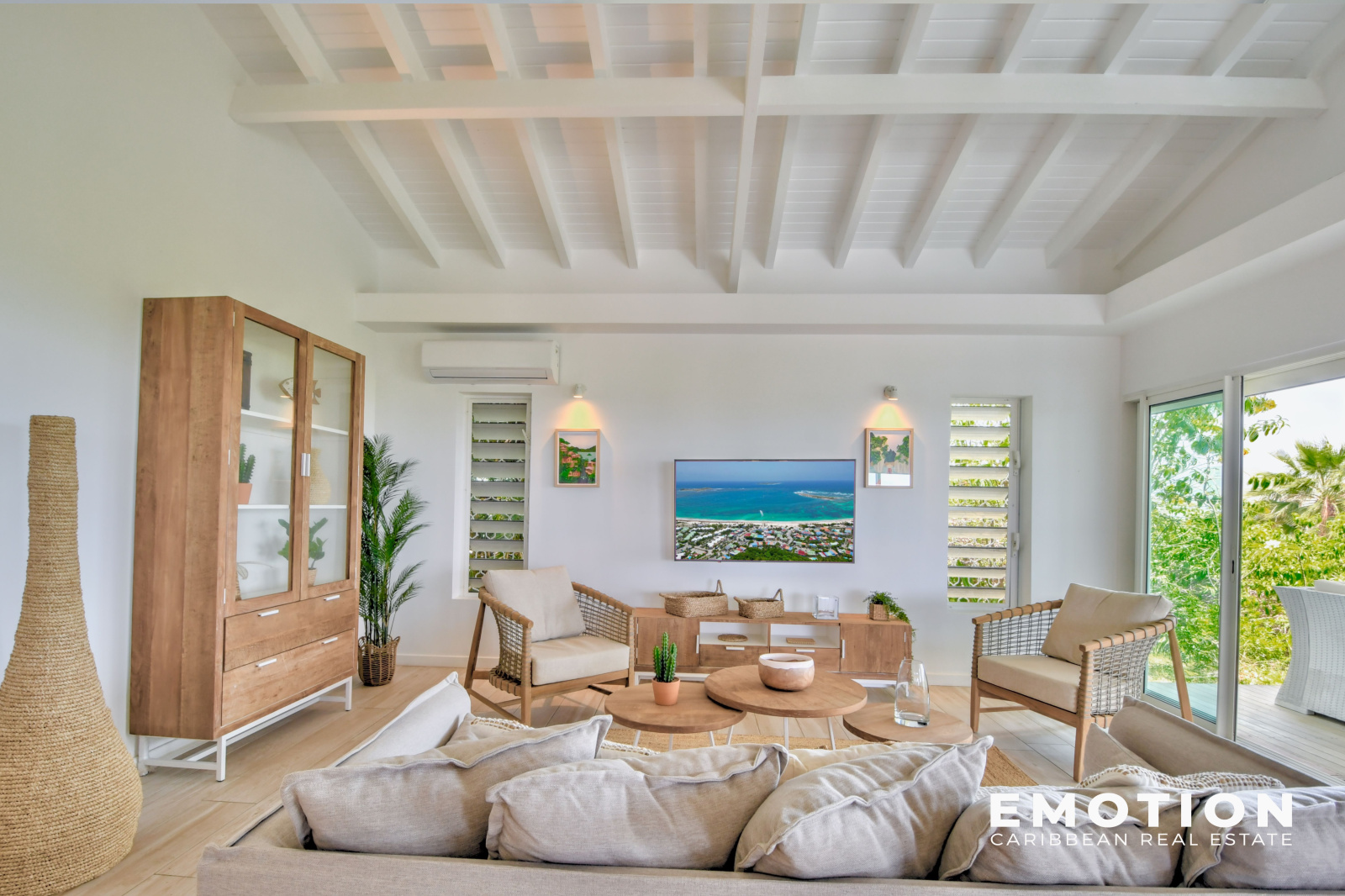 Le cabinet Emotion vous propose à la vente, à l’abri des risques de submersion, dans une résidence sécurisée sur les hauteurs du Parc de la Baie Orientale, une villa de style caribéen offrant une vue mer panoramique à 180°, allant de l’île Pinel jusqu’à Saint-Barthélemy. Ce bien d’exception est situé à seulement 5 minutes à pied de la plage, des commerces, des activités nautiques et de la place du village avec ses nombreux restaurants.