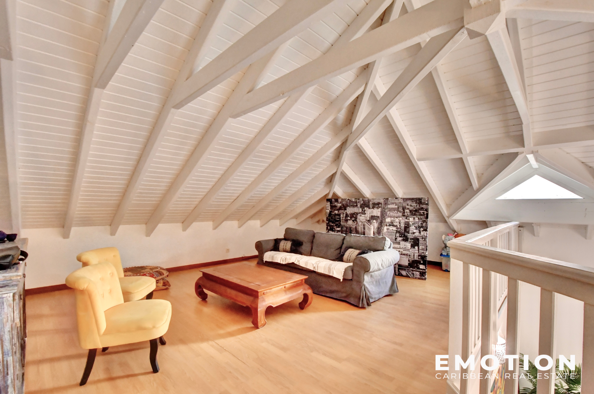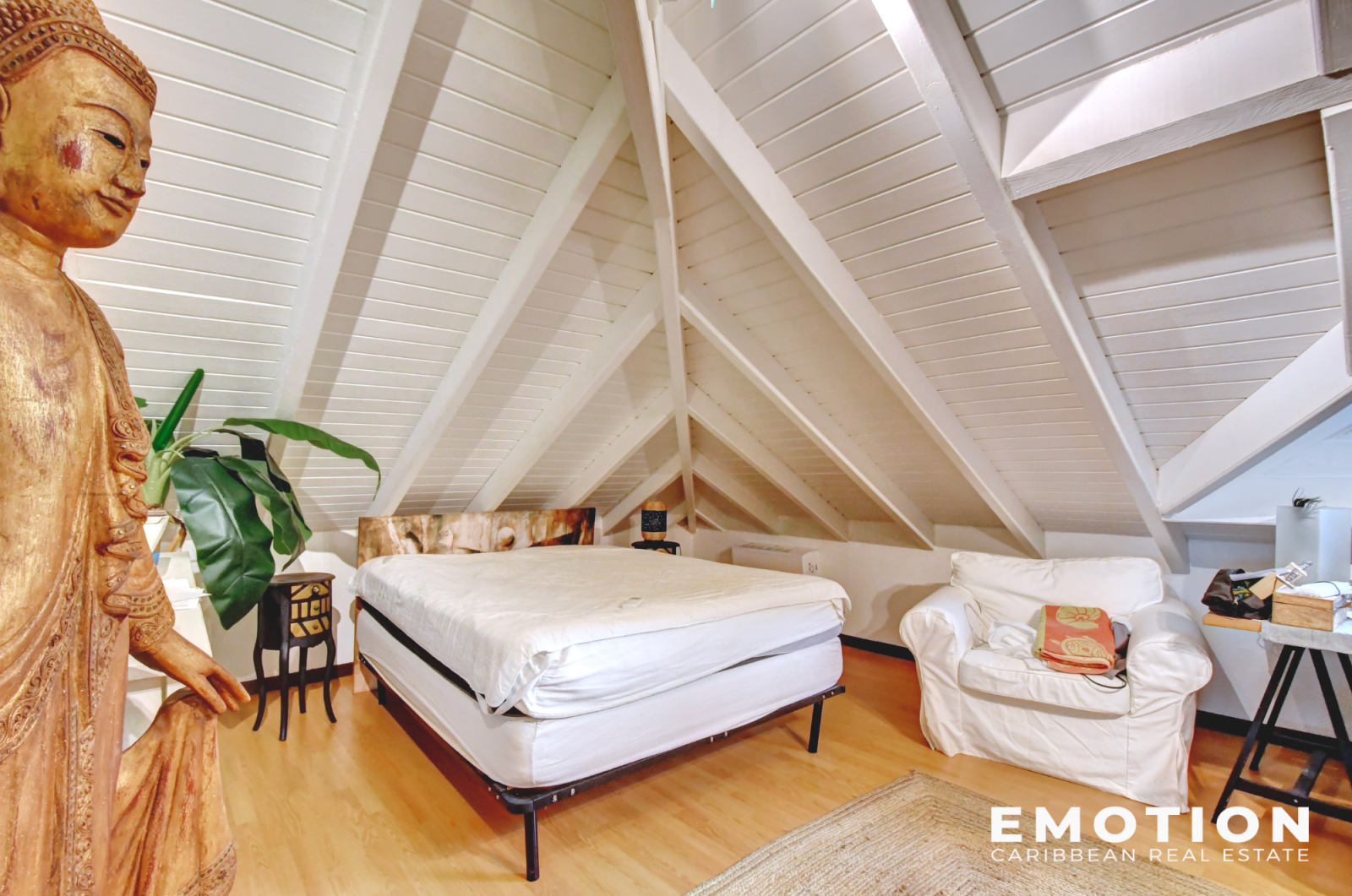 Le bien se compose à l’étage : d’une grande chambre ainsi qu’une mezzanine, idéale pour un espace bureau, lecture ou coin détente.