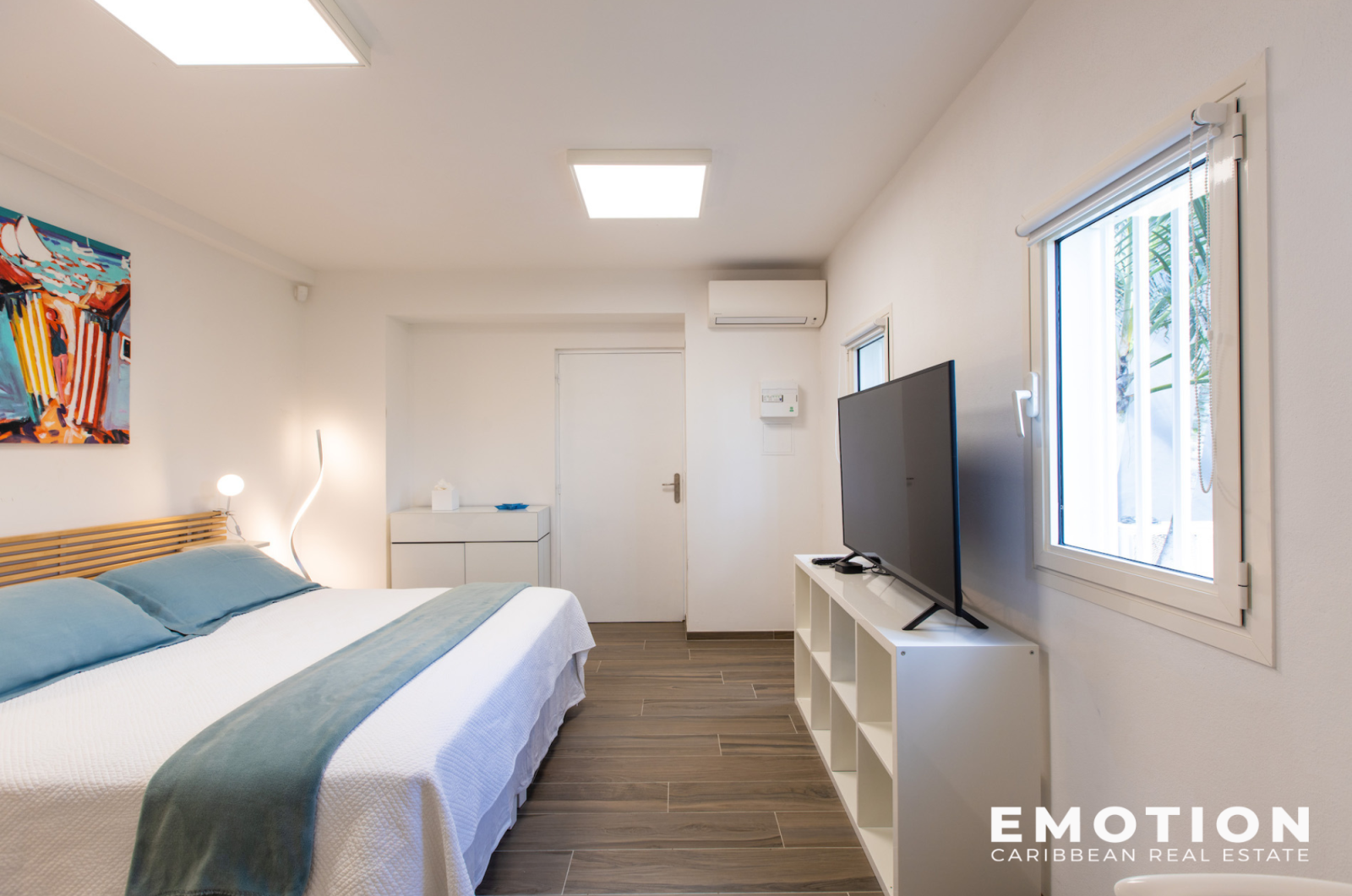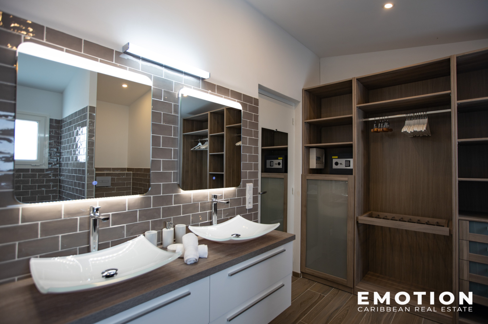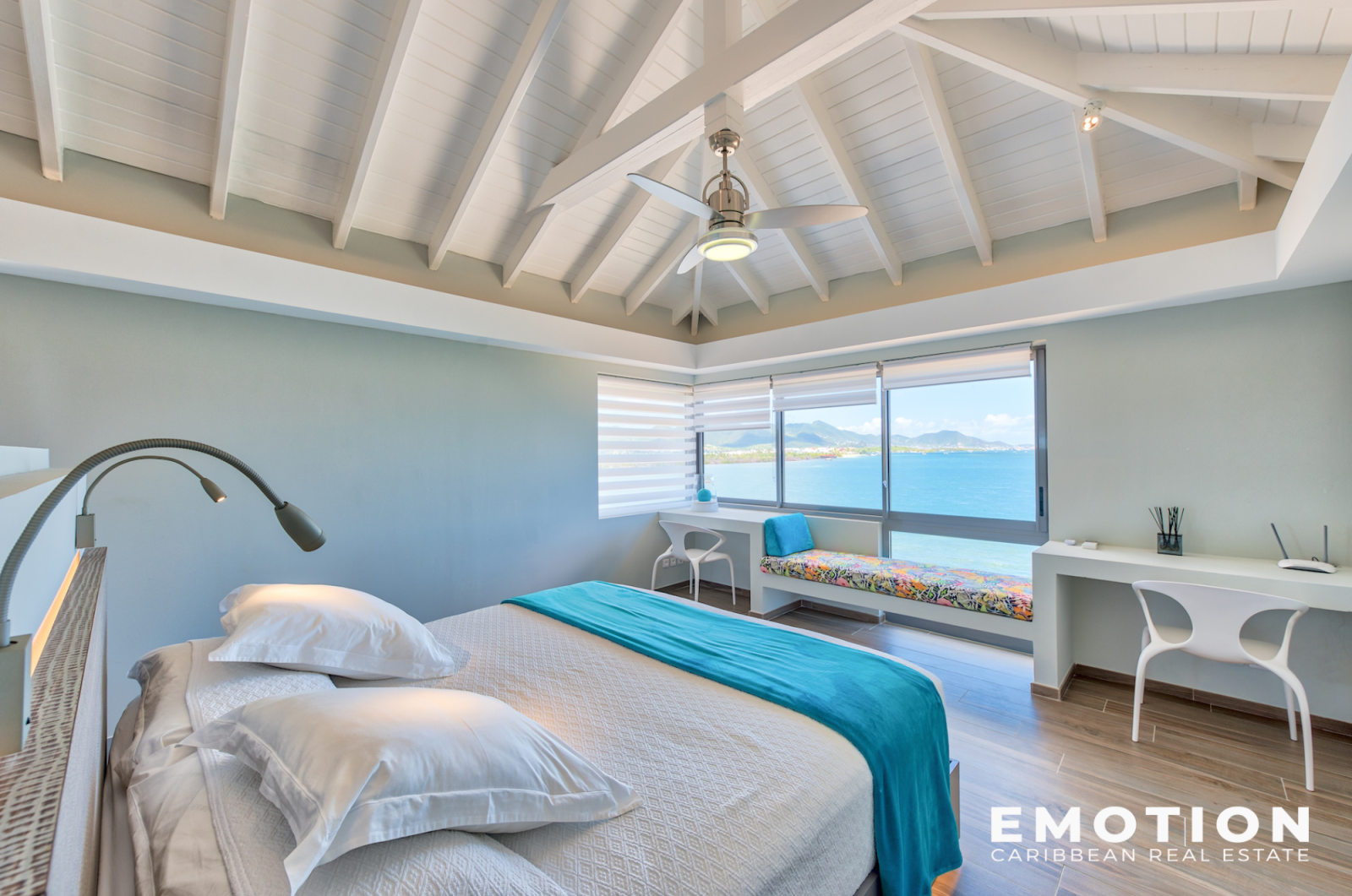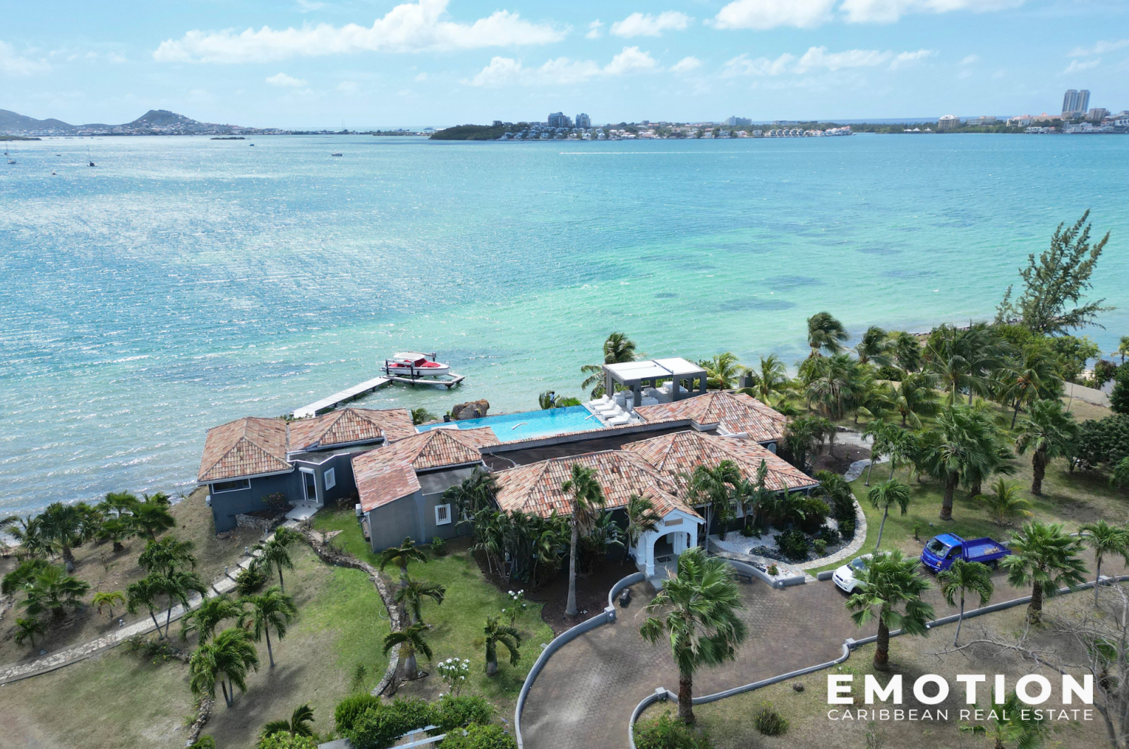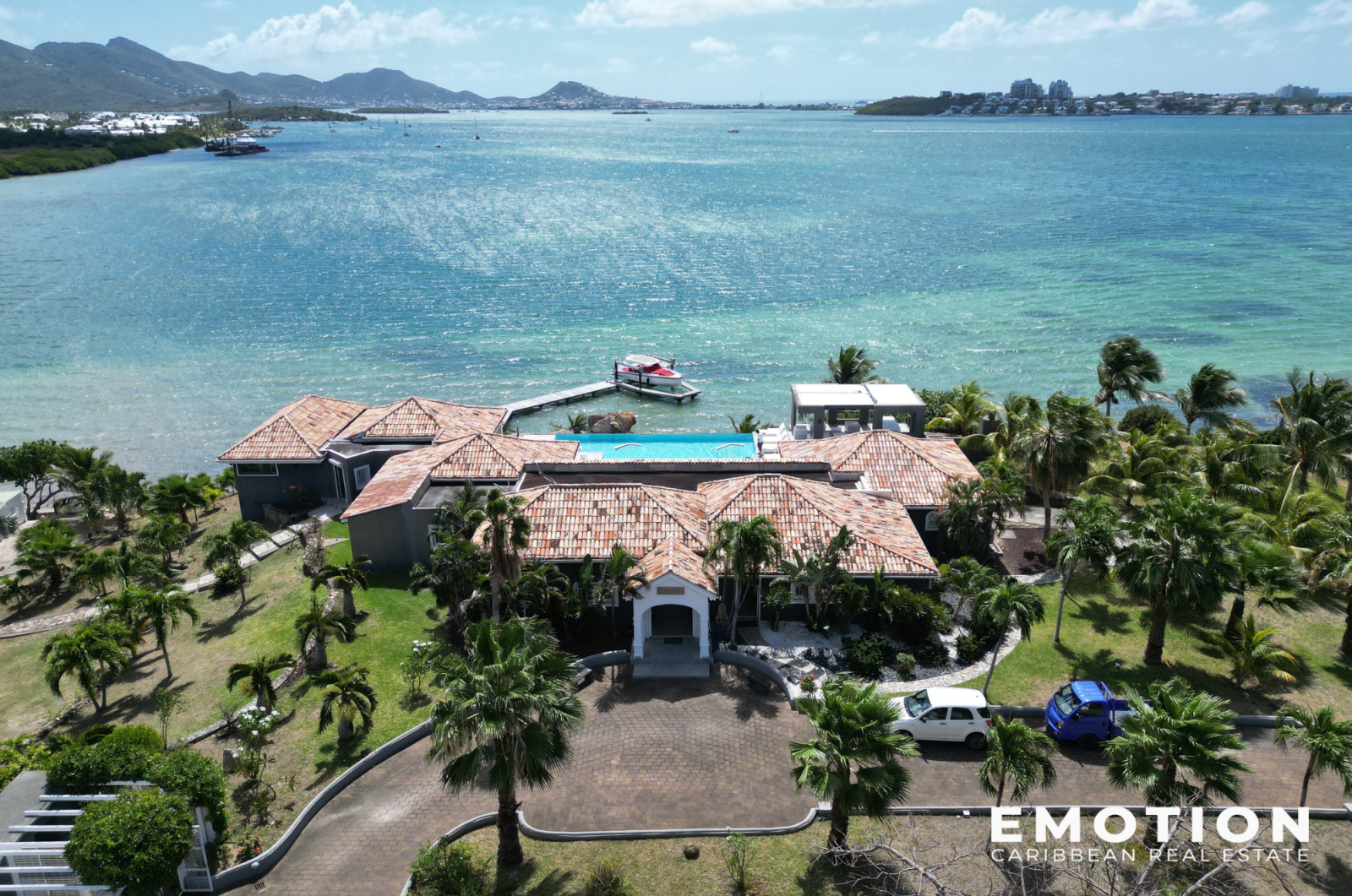 Le cabinet Emotion Real Estate vous présente un nouveau bien à la vente, situé dans le lotissement sécurisé et prestigieux des Terres Basses, à proximité immédiate de la partie hollandaise et de ses commodités. Cette villa exceptionnelle, implantée sur un terrain de 10 700 m², bénéficie de 120 mètres de façade lagon, d’un ponton privé et d’un lift à bateau.