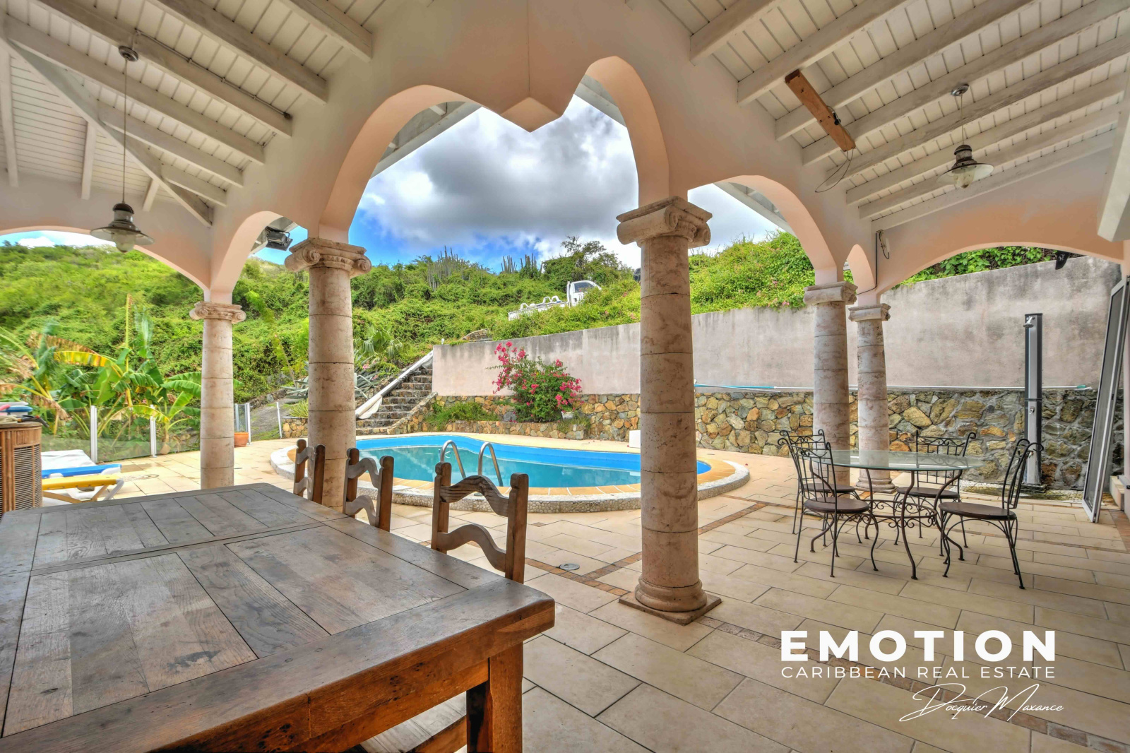 La résidence, bien que hors copropriété, bénéficie d’un cadre paisible et privilégié dans les hauteurs de Friar’s Bay, avec un accès rapide à la mer et aux commodités. Le secteur est prisé pour sa tranquillité et son exposition favorable.