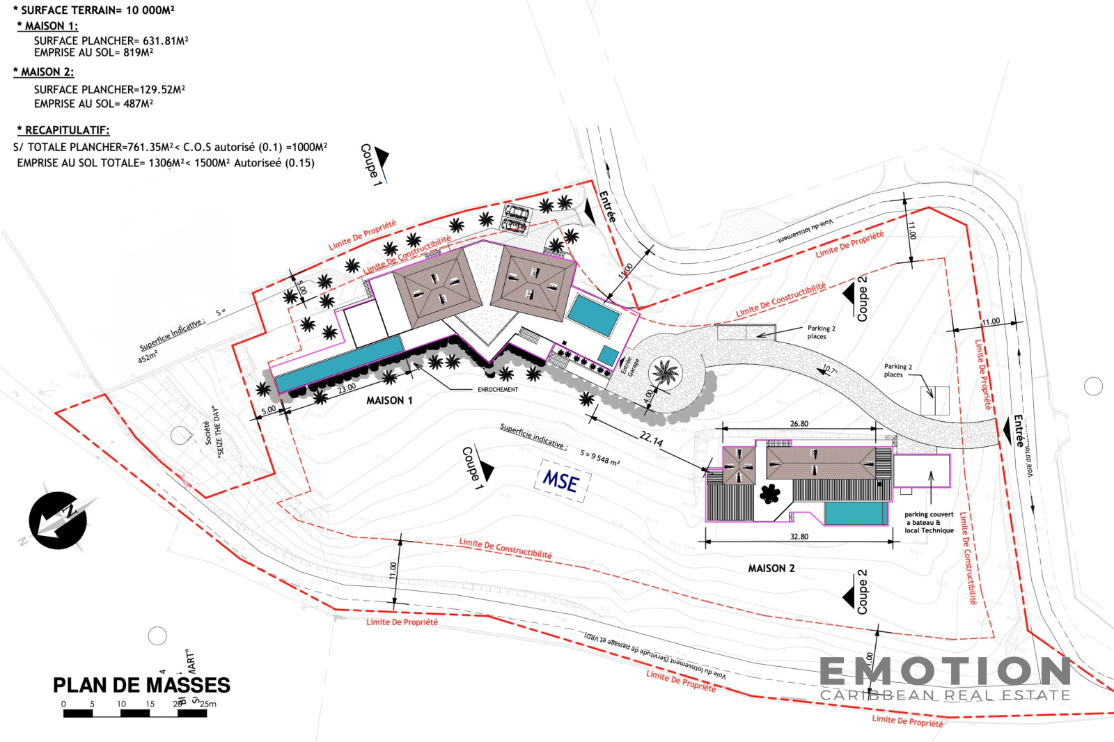 - Surface plancher totale prévue de 761,35 m² sur les 1 000 m² constructibles,