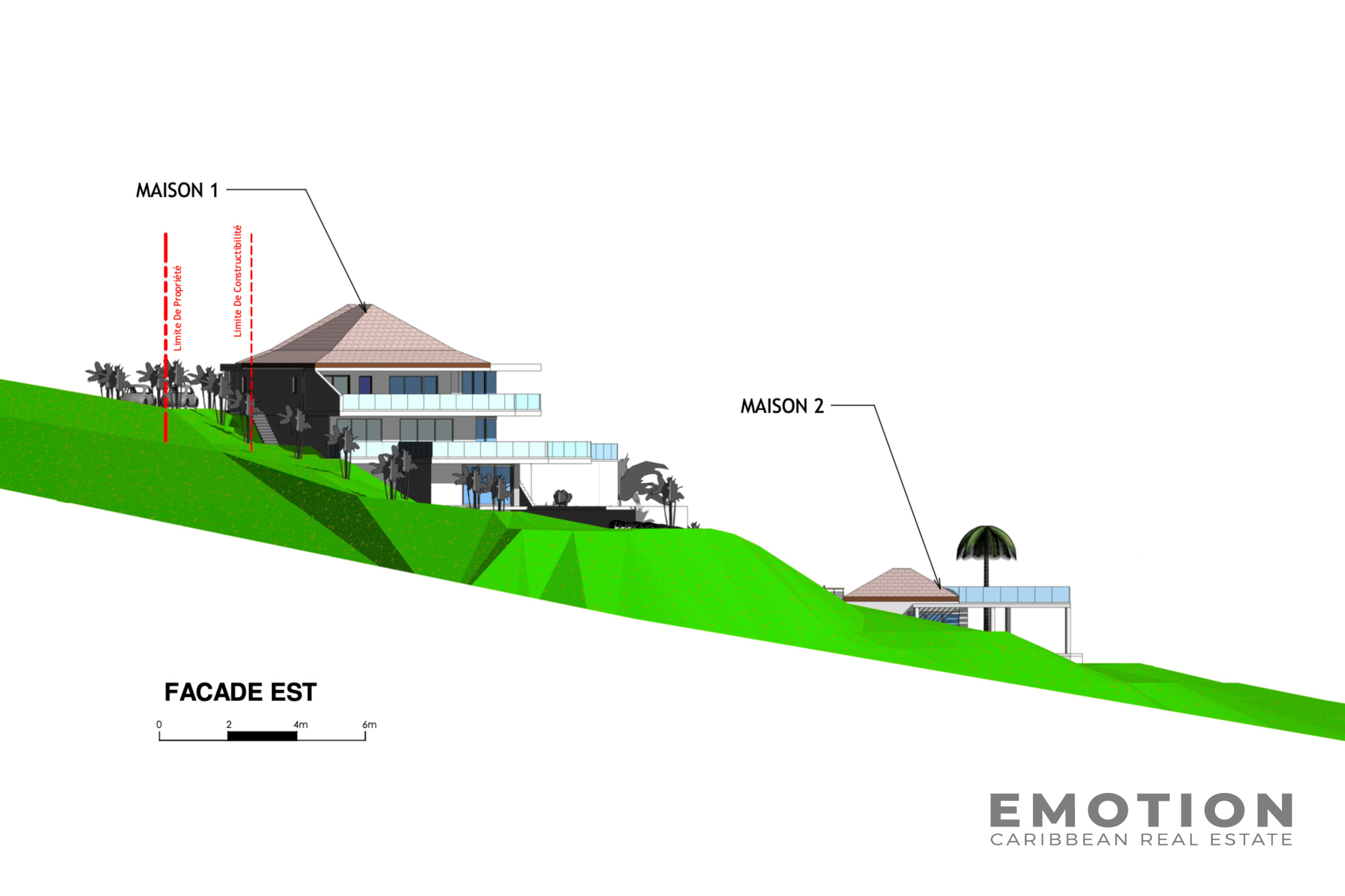 Le cabinet Emotion vous propose à la vente, dans les hauteurs de l’un des secteurs les plus prestigieux de Saint-Martin, un terrain d’exception de 10 000 m², avec permis de construire déjà validé pour un projet de deux villas de grand standing, à seulement quelques minutes de la plage de Baie Longue et de la partie Hollandaise.